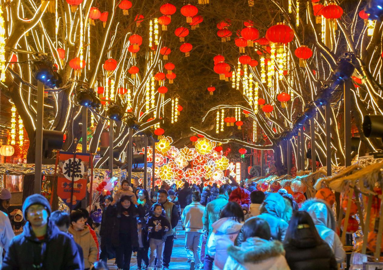 游客在杨柳青古镇观灯赏景(央广网发 西青区融媒体中心供图)