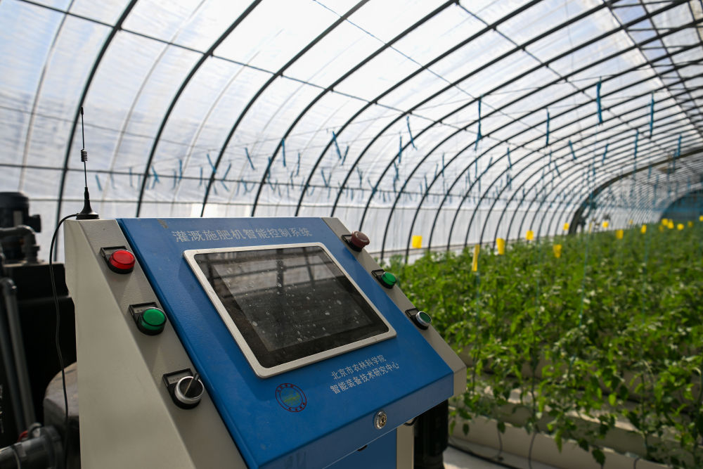 ↑这是3月20日在农芯科技(天津)有限责任公司智慧农业园区智能温室内拍摄的水肥一体化智能管控系统。