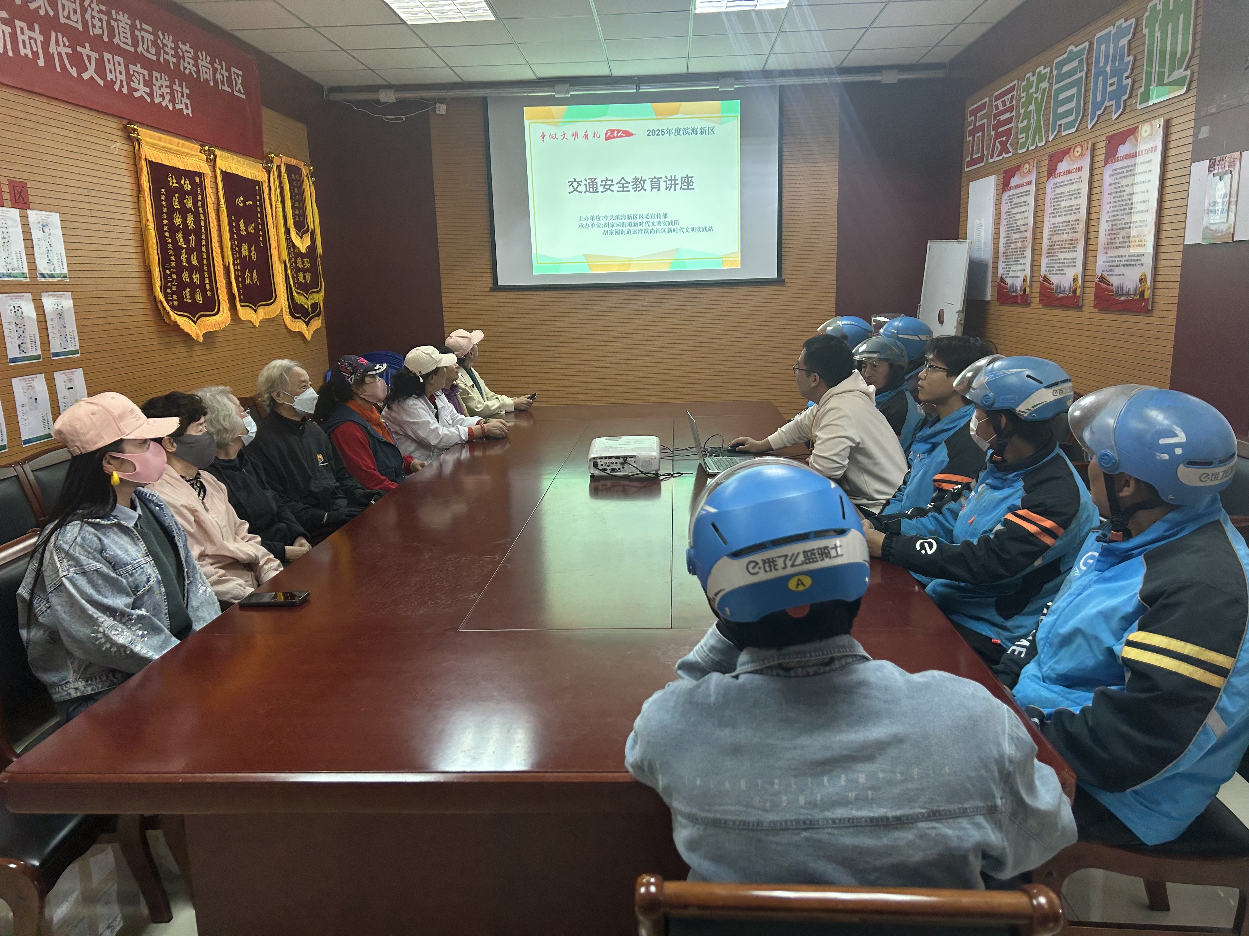 此次培训获得骑手广泛好评,饿了么配送站负责人表示:“交通安全培训能有效降低事故率,实际是帮我们减少损失。”远洋滨尚社区计划将此类活动扩展至快递员、代驾司机等新就业形态劳动者群体,共同营造安全有序的道路交通环境。(社区供图)