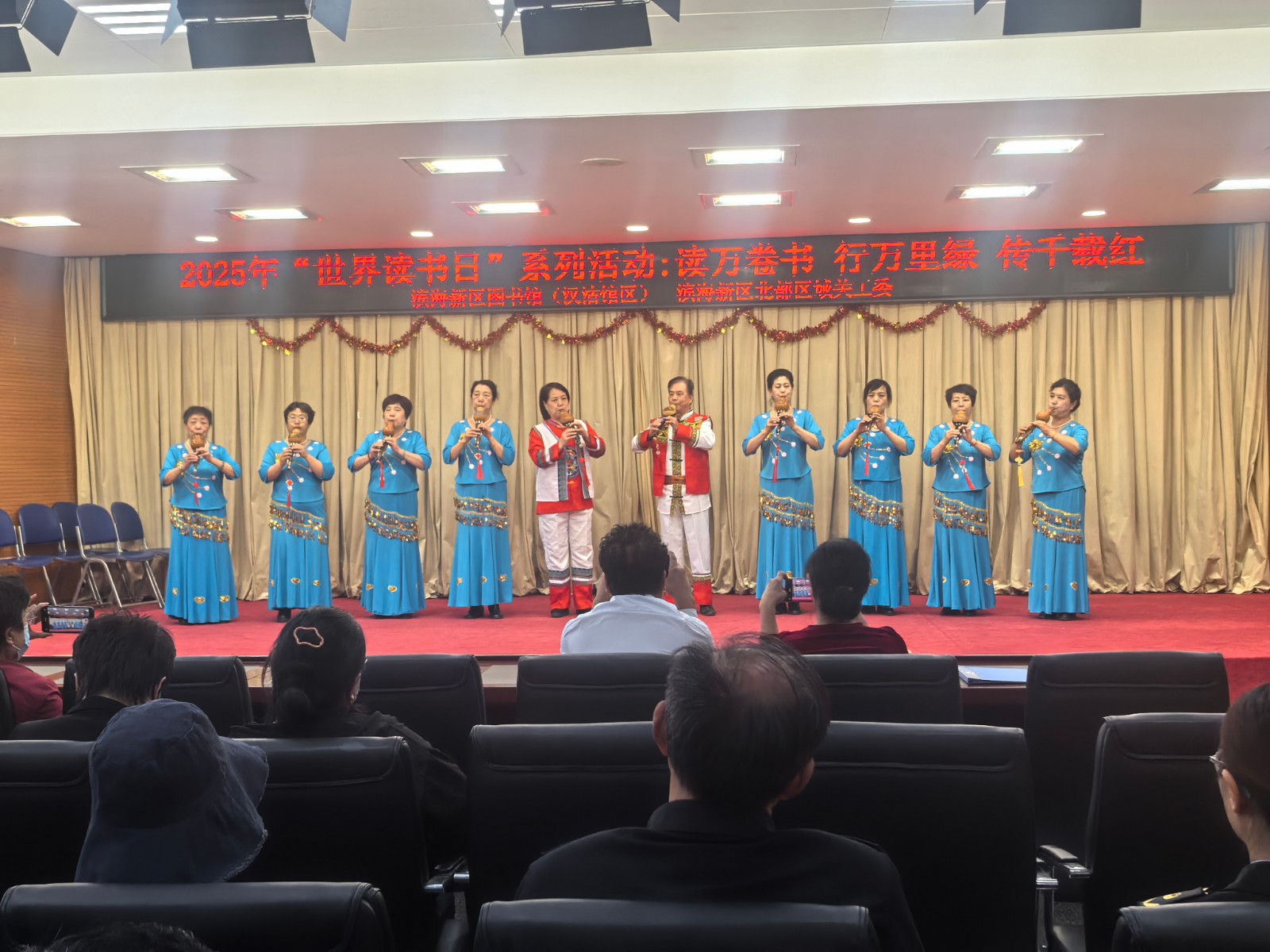 在红色经典诵读活动中,众多朗诵爱好者齐聚一堂,用心感悟、用情演绎,以集体诵读、个人诵读等形式,将《书籍是什么》《谁是最可爱的人》《等待》等尽情呈现,表达对英雄的敬意,表达对党和祖国的热爱。朗诵者们的表演,或铿锵有力、或宛转悠扬、或慷慨激昂,配合民乐合奏、葫芦丝表演等,让现场听众“声”临其境,闻声动情,享受了一场精彩绝伦的视听盛宴。