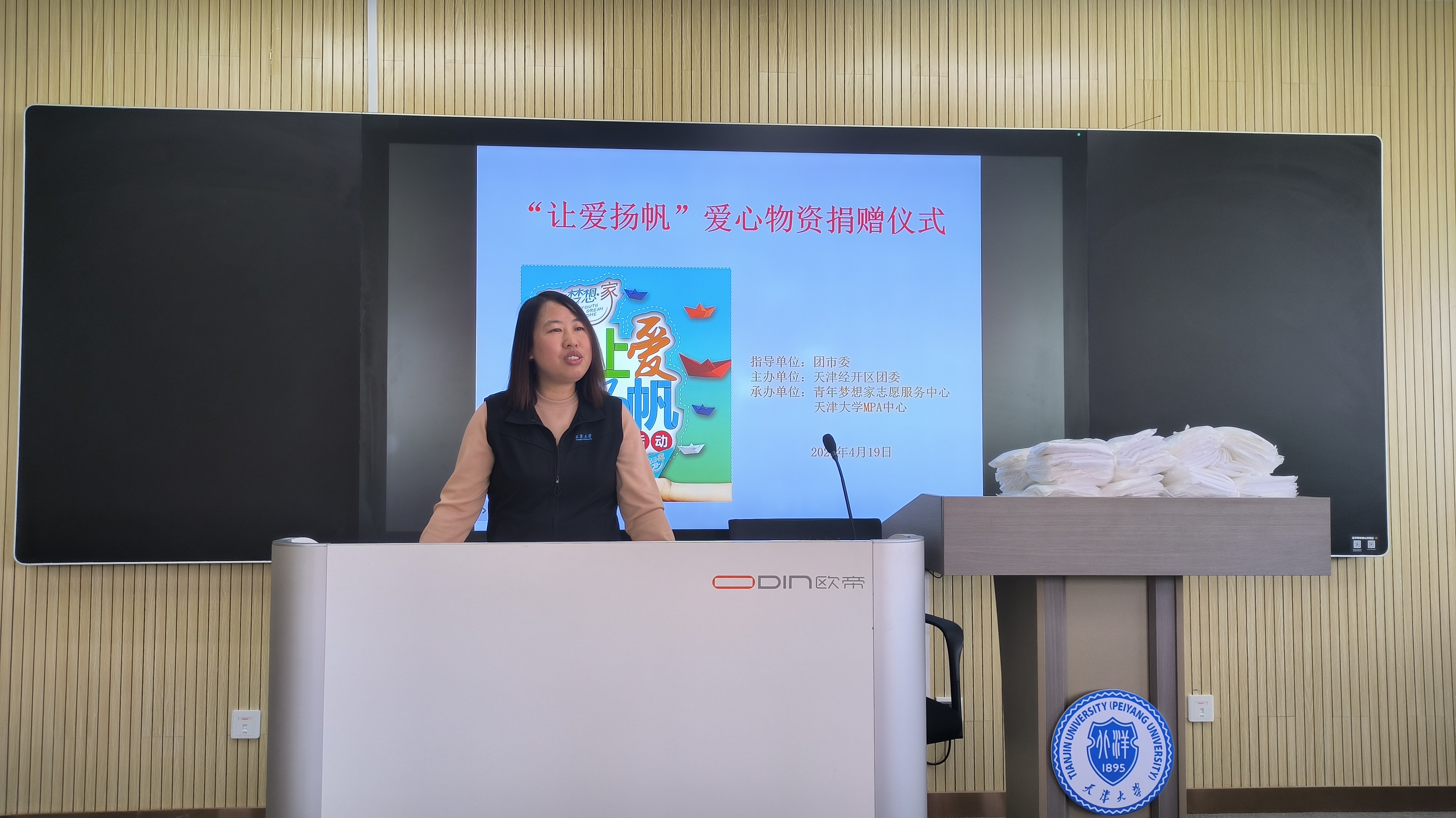 津滨网讯(记者 尹冰晶 摄影报道)近日,天津经开区青年梦想家志愿服务中心“让爱扬帆”第十届爱心物资捐赠仪式在天津大学举行,来自天津大学MPA中心、青年梦想家志愿服务中心,以及天津市实验中学、天津大学附属中学、南开大学附属中学的师生代表们齐聚一堂,共同见证温暖时刻。