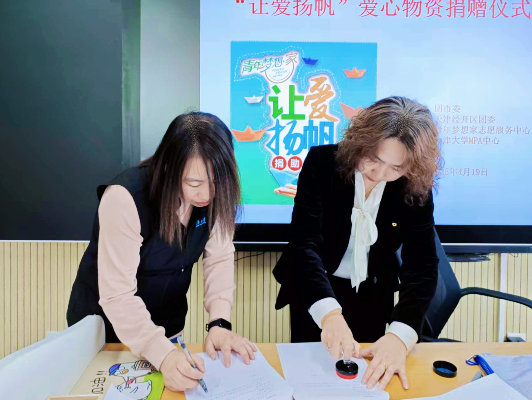 此外,活动现场,天津经开区青年梦想家志愿服务中心还与天津大学MPA中心举行了签订志愿服务协议仪式。这一协议的签订,标志着双方将在未来开展更加紧密的合作,携手推动公益事业迈向新台阶。