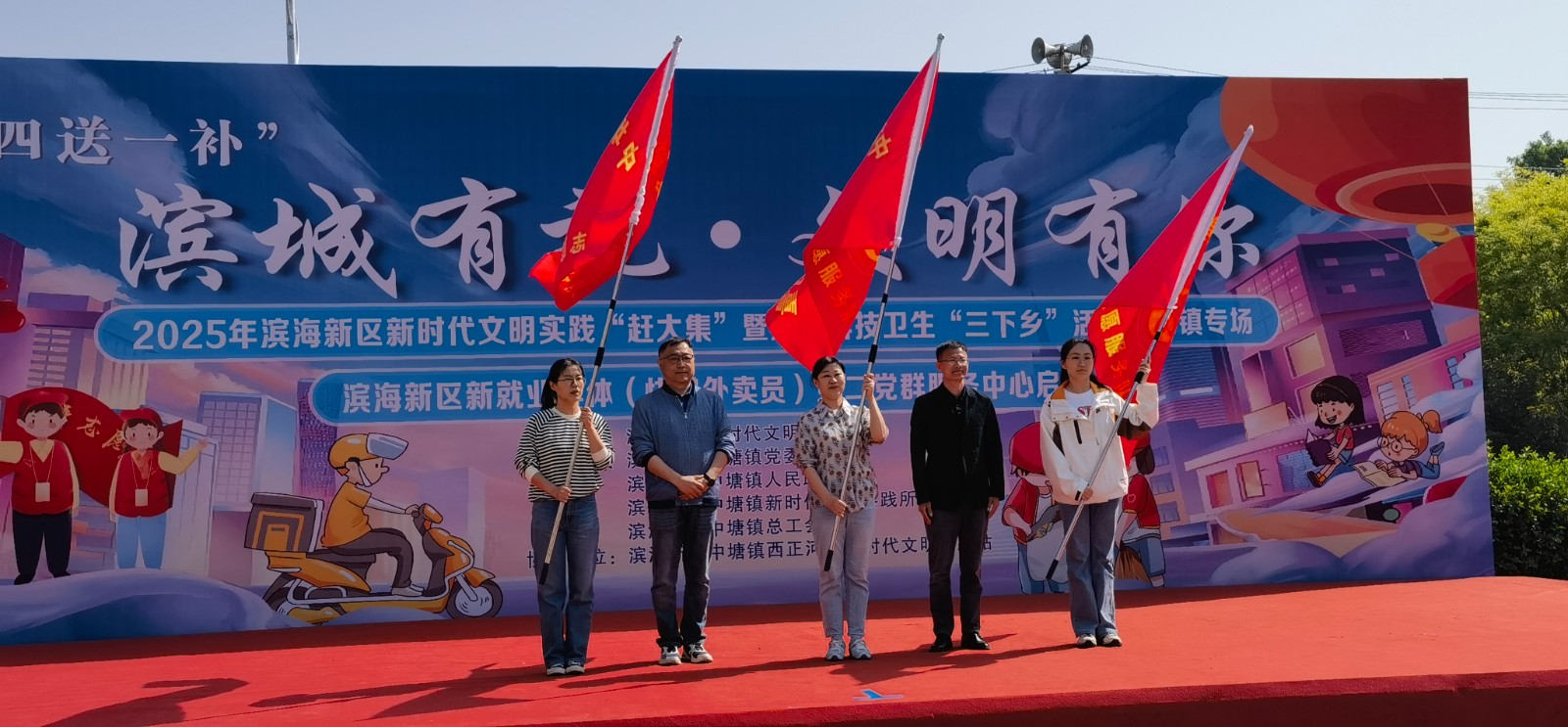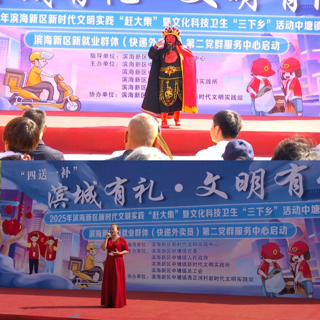 “我宣布,‘滨城有礼·文明有你’2025年滨海新区新时代文明实践‘赶大集’暨文化科技卫生‘三下乡’活动中塘镇专场现在开始!”中塘镇党委书记闫宁宣布“大集”正式“开张”。