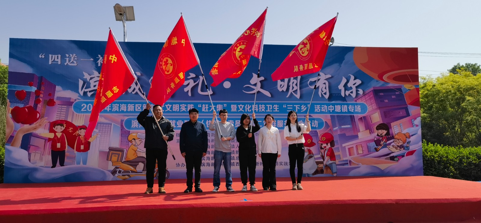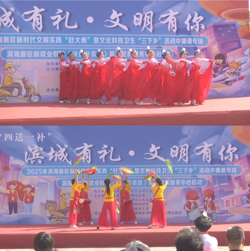 4月29日,“滨城有礼·文明有你”2025年滨海新区新时代文明实践“赶大集”暨文化科技卫生“三下乡”活动中塘镇专场在正兴里小区广场拉开序幕。
