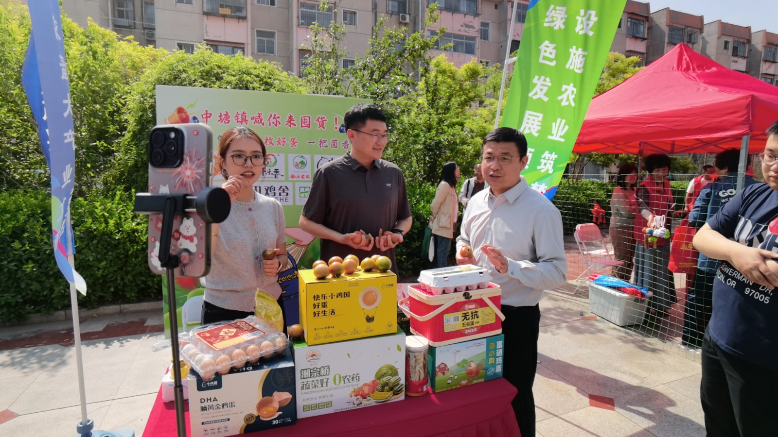 “大家好,我是中塘镇党委书记闫宁。我手里的是咱中塘镇的特色农产品西红柿,此外,我们还有鸡蛋、银耳、茶树菇等等,欢迎大家来中塘镇体验采摘……”“大家好,我是中塘镇党委副书记陈婷,您一定要下单尝尝我们的西红柿,吃一口清清爽爽……”一部手机、一个支架,组成了一个助农直播间。