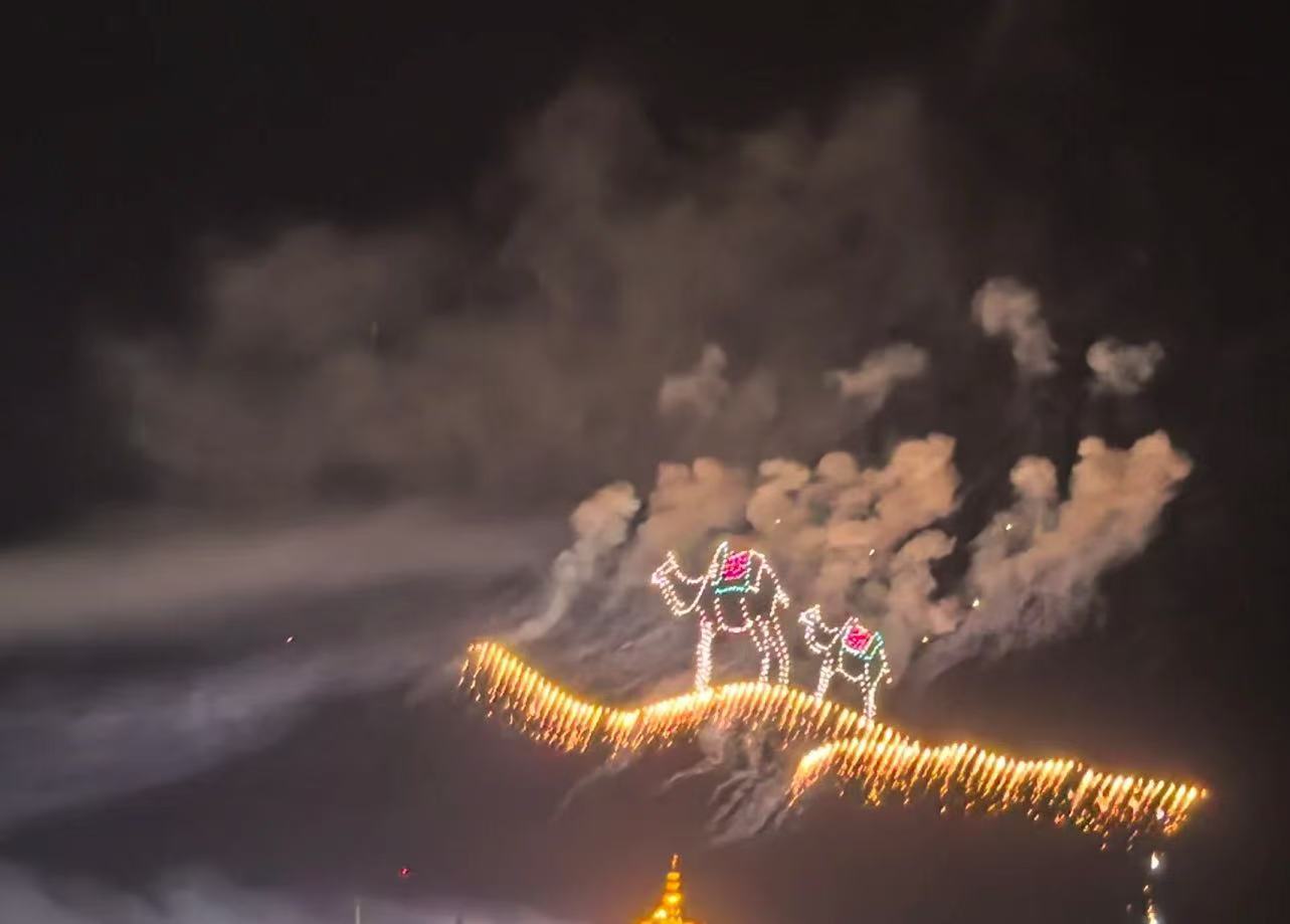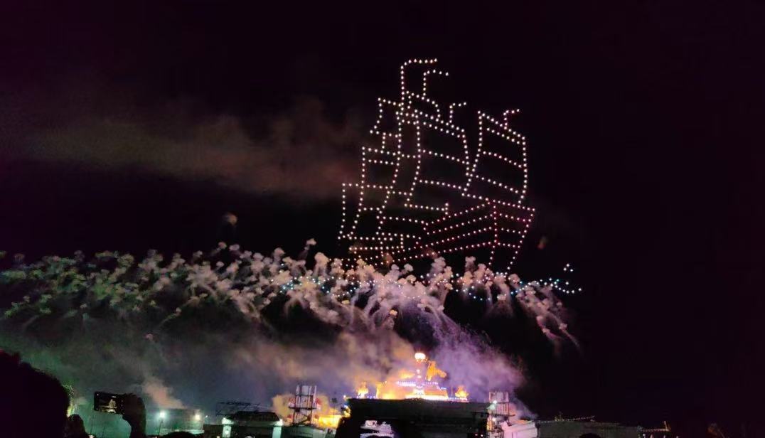 备受游客喜爱的“夜上津门·焰遇航母”五一特别版无人机焰火秀受到游客普遍欢迎。夜幕降临,绚烂的焰火腾空而起,接连不断在夜幕中开出火树银花。近千架无人机的登场更是将现场气氛推向高潮,无人机编队在夜空中勾勒出复兴号列车、扬帆启航、丝路驼铃等画面,为观众呈现了一场穿越时空的“天空交响”。“感受到了烟花的魅力与创意,融合科技元素的无人机表演,给我们的感官带来强烈的刺激。每时每刻都有不一样的新奇感受。”来自成都的游客张元告诉记者。“除了视觉上的震撼之外,每一幅画面的变化都很有意义,也都具有故事性,这让我感到很澎湃,它们都在向我们传递文化自信这一价值观。”一位来自哈尔滨的游客表示。