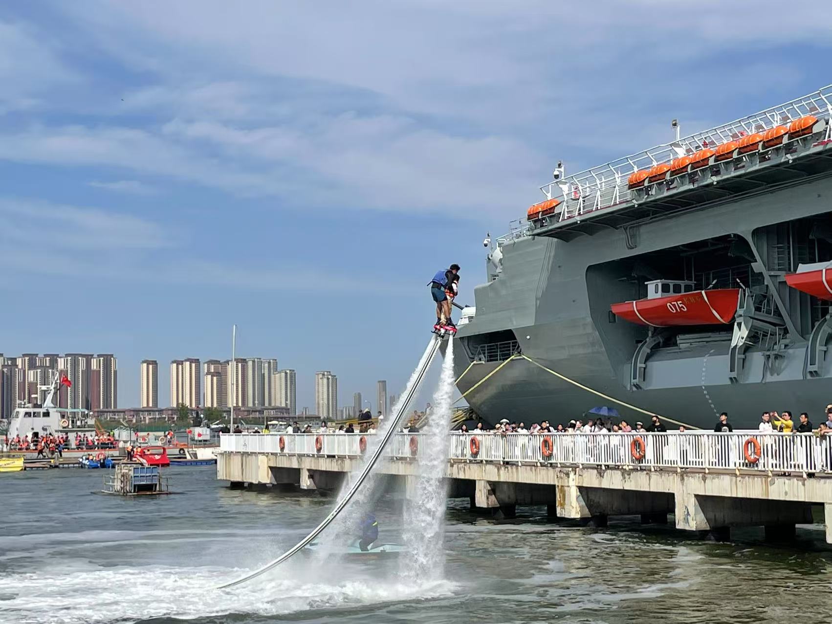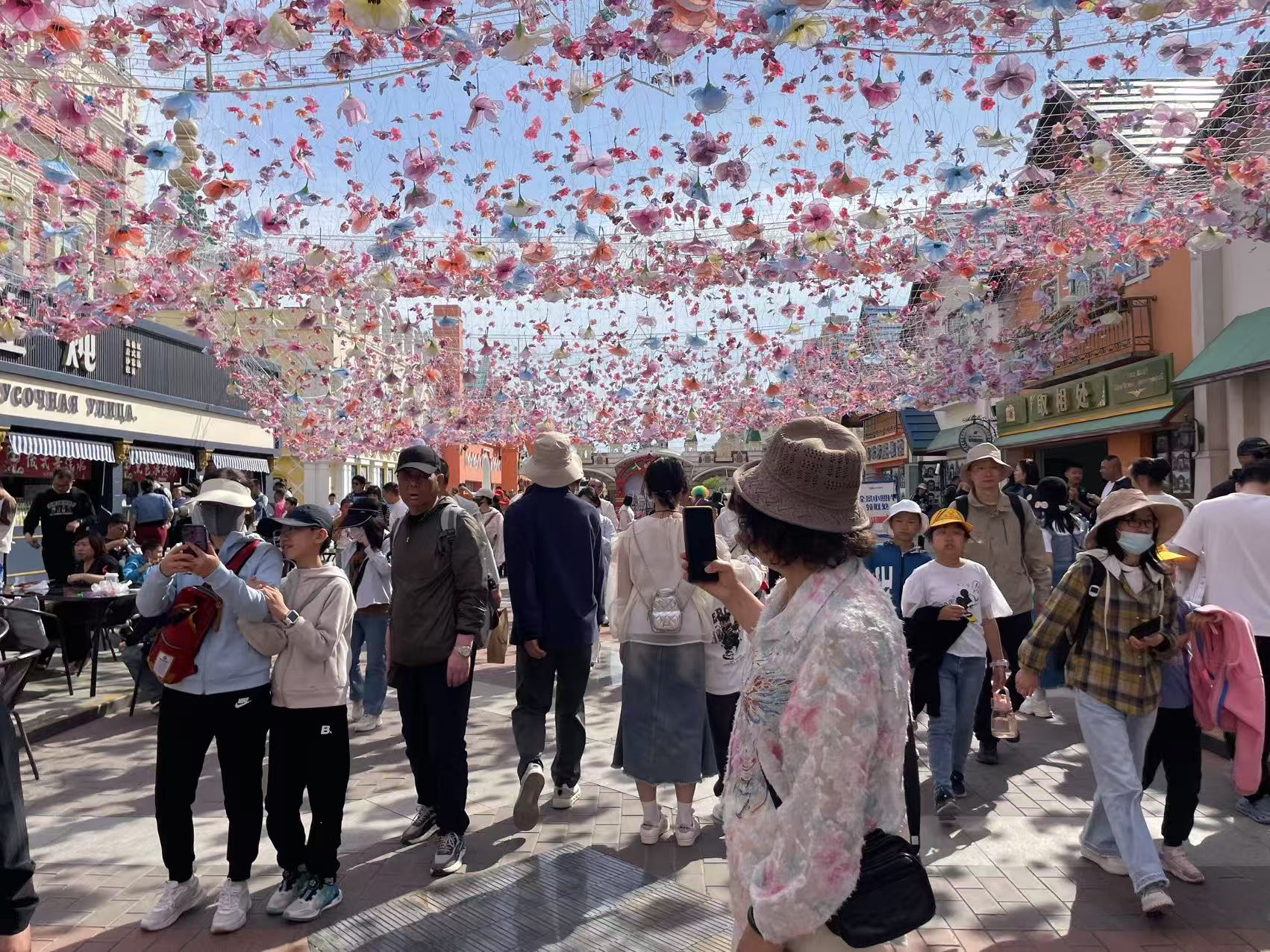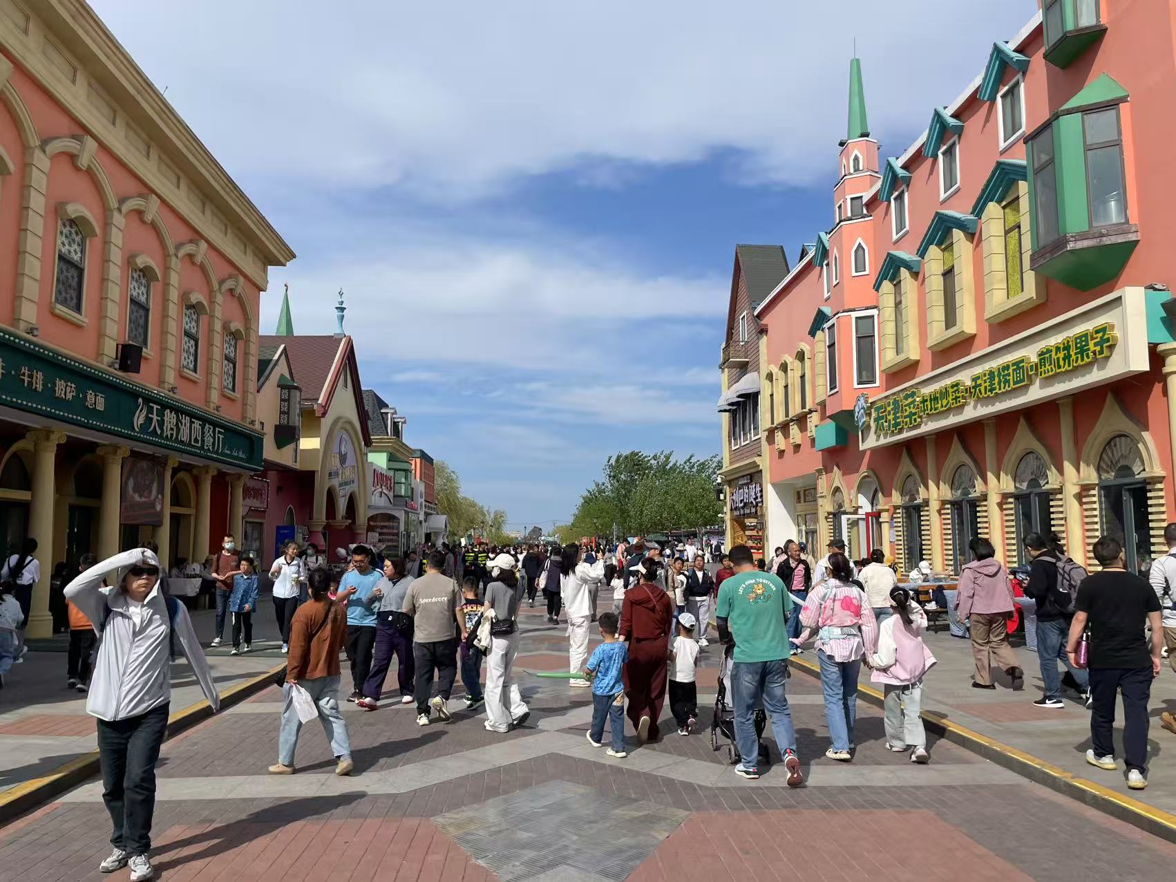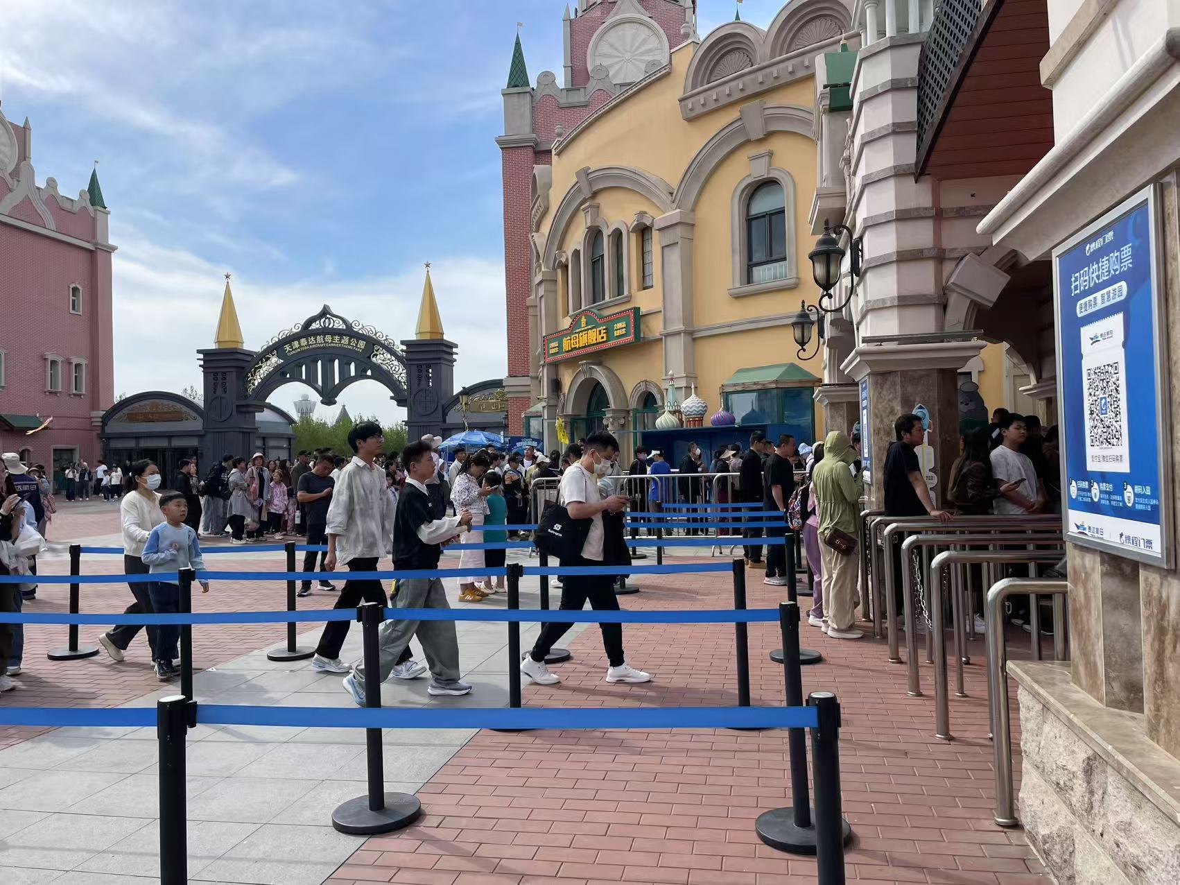 5月1日,记者在泰达航母主题公园看到,大批游客沿着文化商业街步入园区,景区进入“人海”模式。景区内,航母吉祥物吉福、抱豹、妃妃以及小丑先生的互动表演受到低龄游客的欢迎,《飞车特技》表演座无虚席,实景海战《航母风暴》现场赞叹声连连,航母编队吸引了诸多军事迷打卡拍照……以“逐梦启航·欢乐绽放”为主题,多彩的活动为游客提供沉浸式多元文化盛宴。