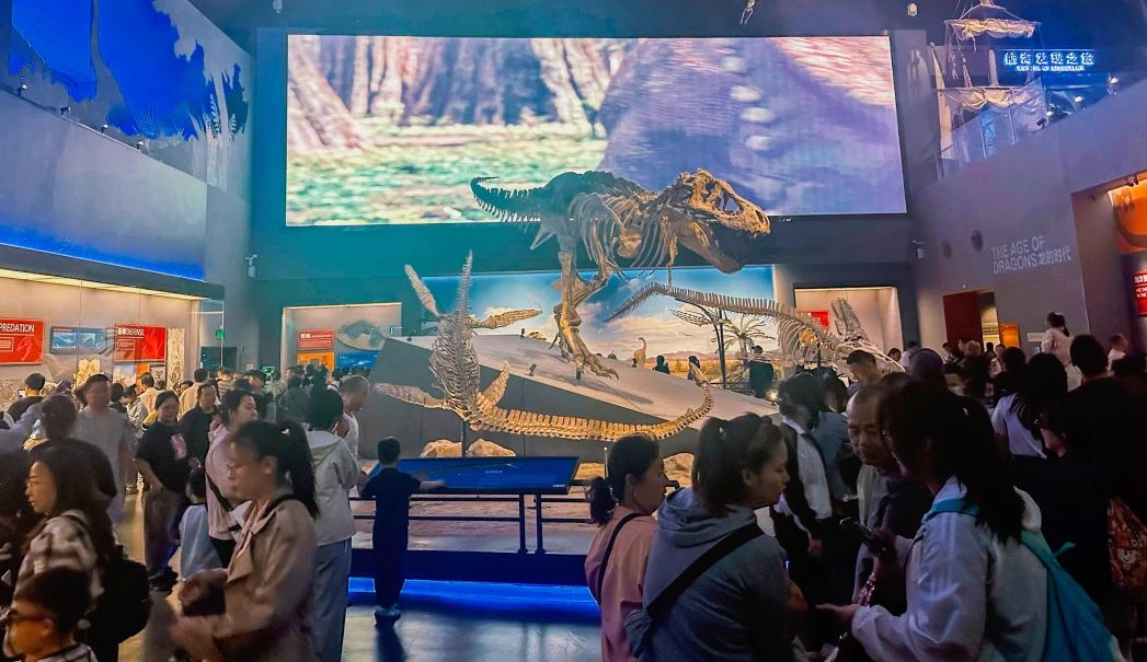 国家海洋博物馆5天假期持续推出精品临展,举办“长安三万里——陕西唐代文物精华展”“丹青盛世——中国近现代书画名家作品展”“一醒惊天下——三星堆沉浸式光影艺术展”等高质量展览,成为文化之旅的热门地。其中,新临展“一醒惊天下・三星堆沉浸式光影艺术展”以科技与文化融合的方式,带领游客领略古蜀文明的神秘魅力。音乐舞台剧《爱丽丝梦游仙境》、蓝色家园活体展厅美人鱼表演灵动唯美,大受亲子家庭欢迎。特色系列科普课程《哪吒寻根记》《大海中的萤火虫》《海上环游记》场场爆满。