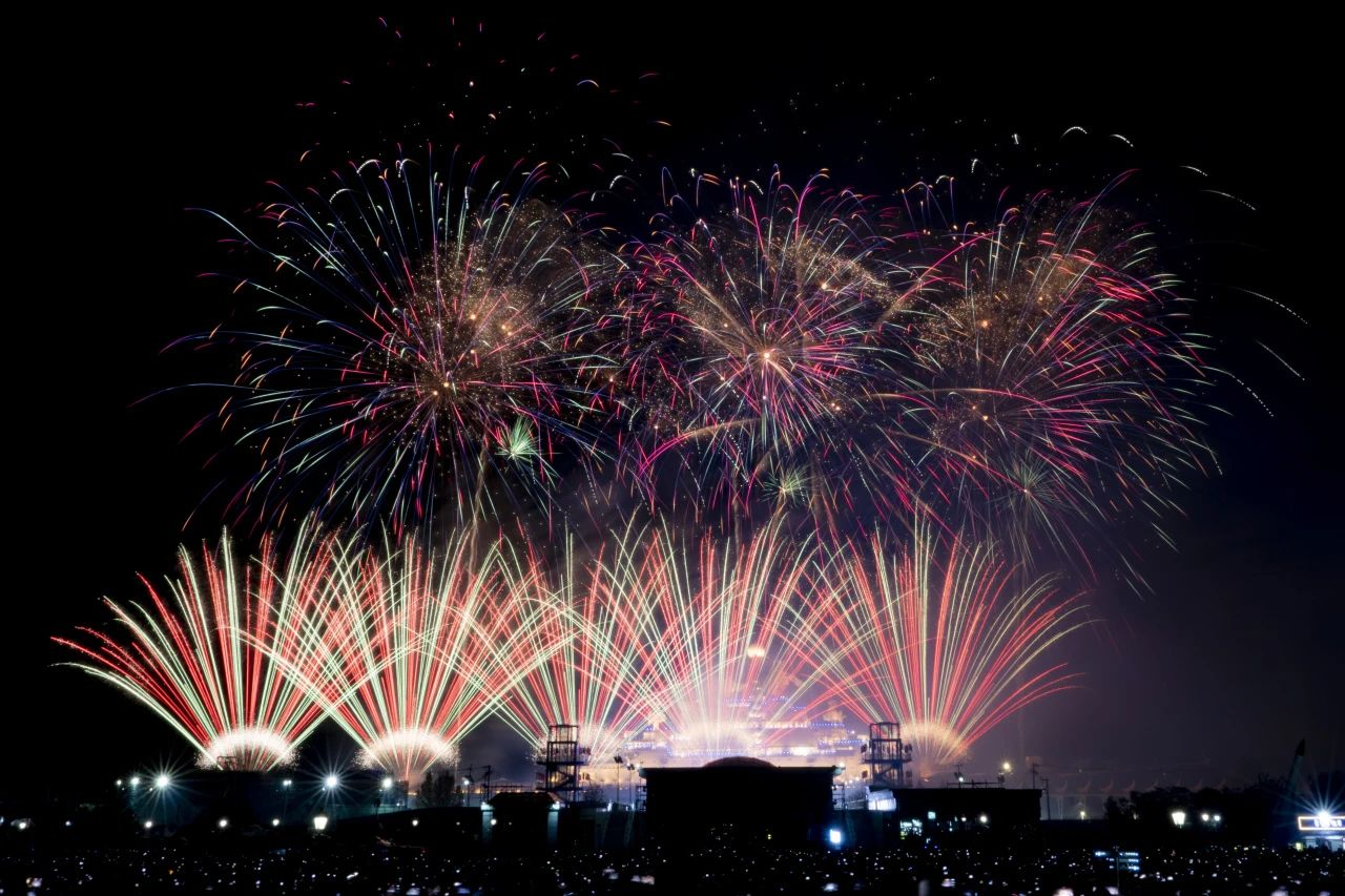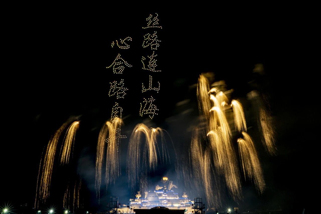 在天津泰达航母主题公园,这里的“无人机+焰火”再上新高度。夜空中,千架无人机编队时而化作时光信使,丈量文明交融的壮阔史诗;时而变为千年驼铃,穿越大漠孤烟,云帆高挂联通四海波涛。当星空下拼出鎏金的“归”字,让现场上万观众热泪盈眶。