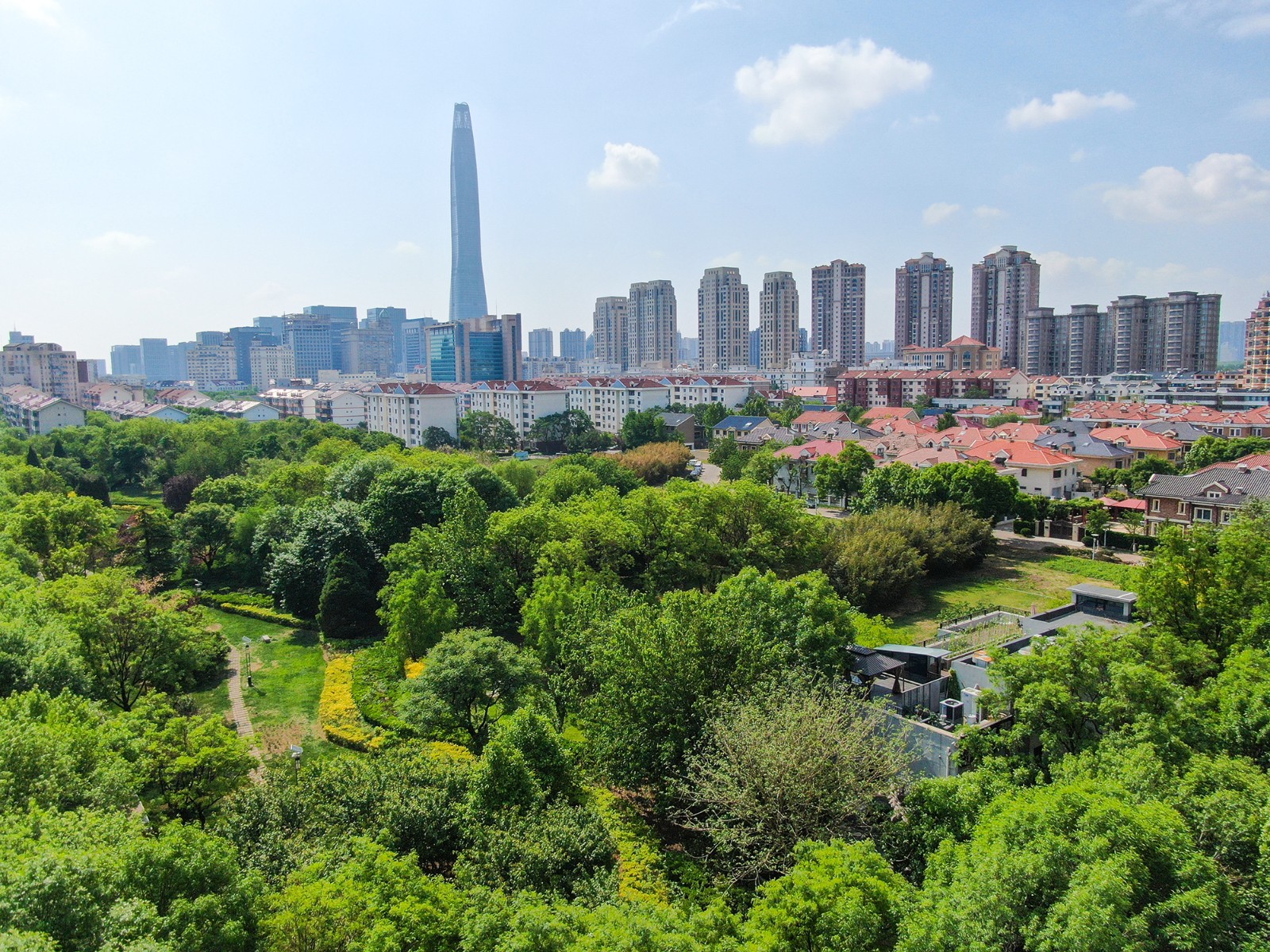 津滨网讯(记者 贾磊 摄影报道)一场夜雨为滨城洗去尘埃,5月6日,清晨的天空湛蓝如镜,云朵似棉絮般轻盈飘逸,与城市建筑勾勒出的天际线相映成趣。泰丰公园内,绿植经过雨水的洗礼愈发鲜翠欲滴,枝叶间挂着的露珠在晨光中闪烁,为市民提供了一处静谧的休闲之所。
