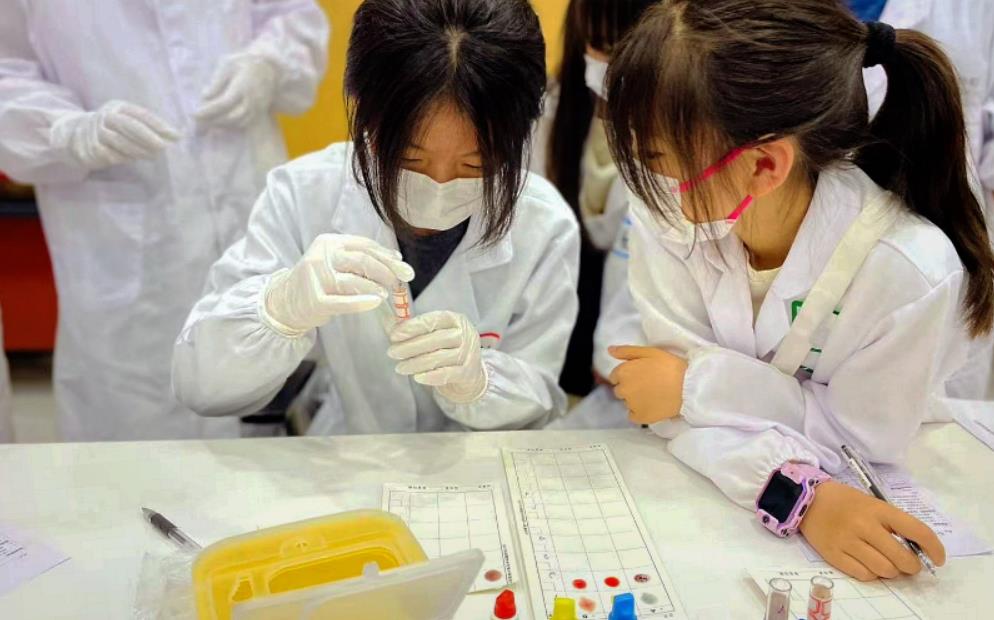 5月2日,在17名天津学子科技志愿者的耐心引导下,学生们依次参观了生命科技体验馆、标准化实验室以及天津市脐带血造血干细胞库。这一过程宛如打开了一扇扇通往生物医学前沿的神秘大门,完整地呈现了细胞从采集、检测到冻存的全流程质量控制体系,让抽象的知识变得具体可感。下午的实验环节更是将学习推向了实践的高潮:血型鉴定实验借助抗原抗体反应这一科学原理,如同一把神奇的钥匙,为学生们揭开了血液密码的神秘面纱;微生物检测实验则通过培养皿上洗手前后菌落的鲜明对比,直观地展现出微生物世界里的奇妙差异。当学生们用黏土亲手构建出立体细胞模型的那一刻,线粒体、细胞核等曾经晦涩难懂的概念瞬间转化为了触手可及的实物,知识在他们的指尖鲜活起来。