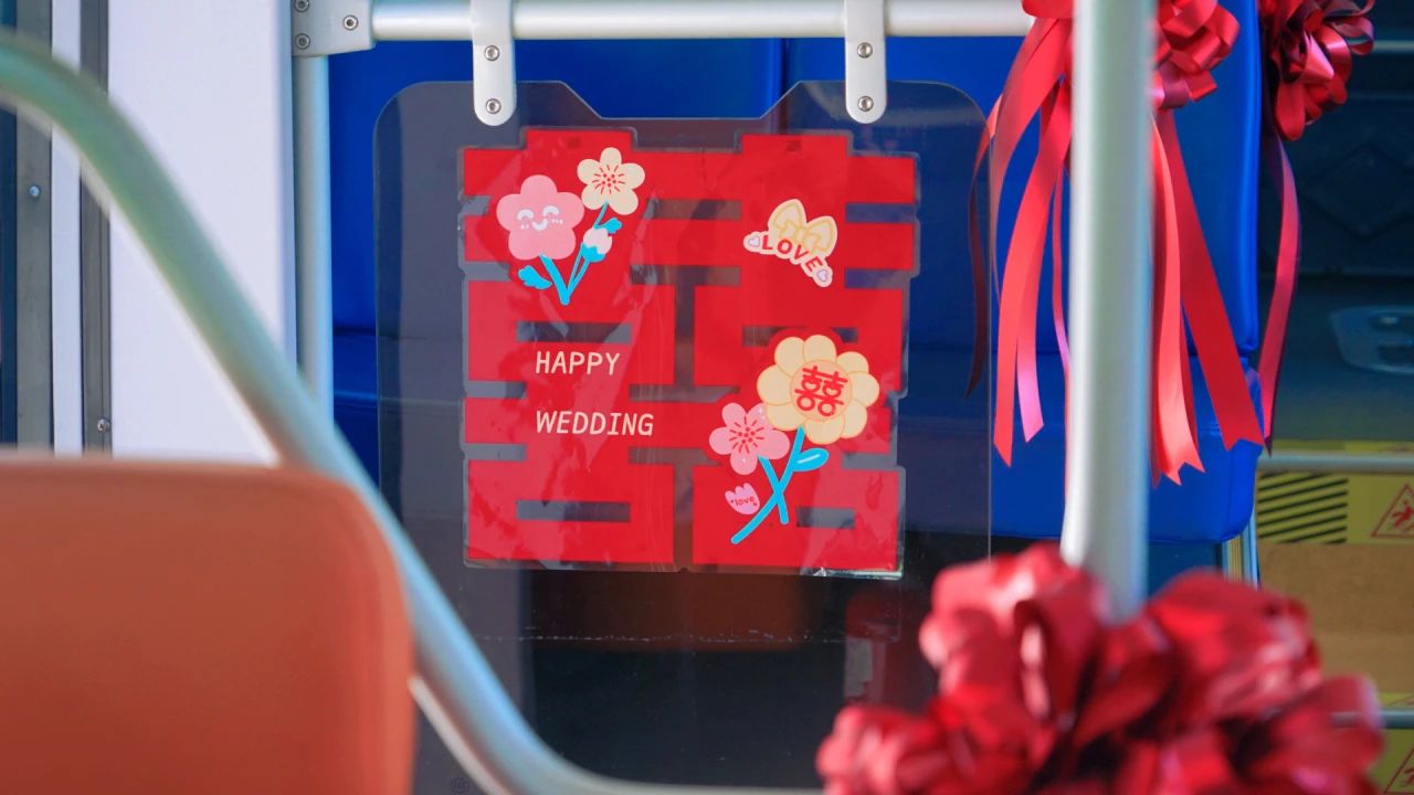 5月3日,一辆披着定制婚礼车衣、缀饰着大红喜字的“公交婚车”,载着新人的甜蜜与亲友的祝福,缓缓驶过生态城街头,成为一幅流动的浪漫画卷。这是生态城交通公司推出定制化婚车服务的首次亮相。