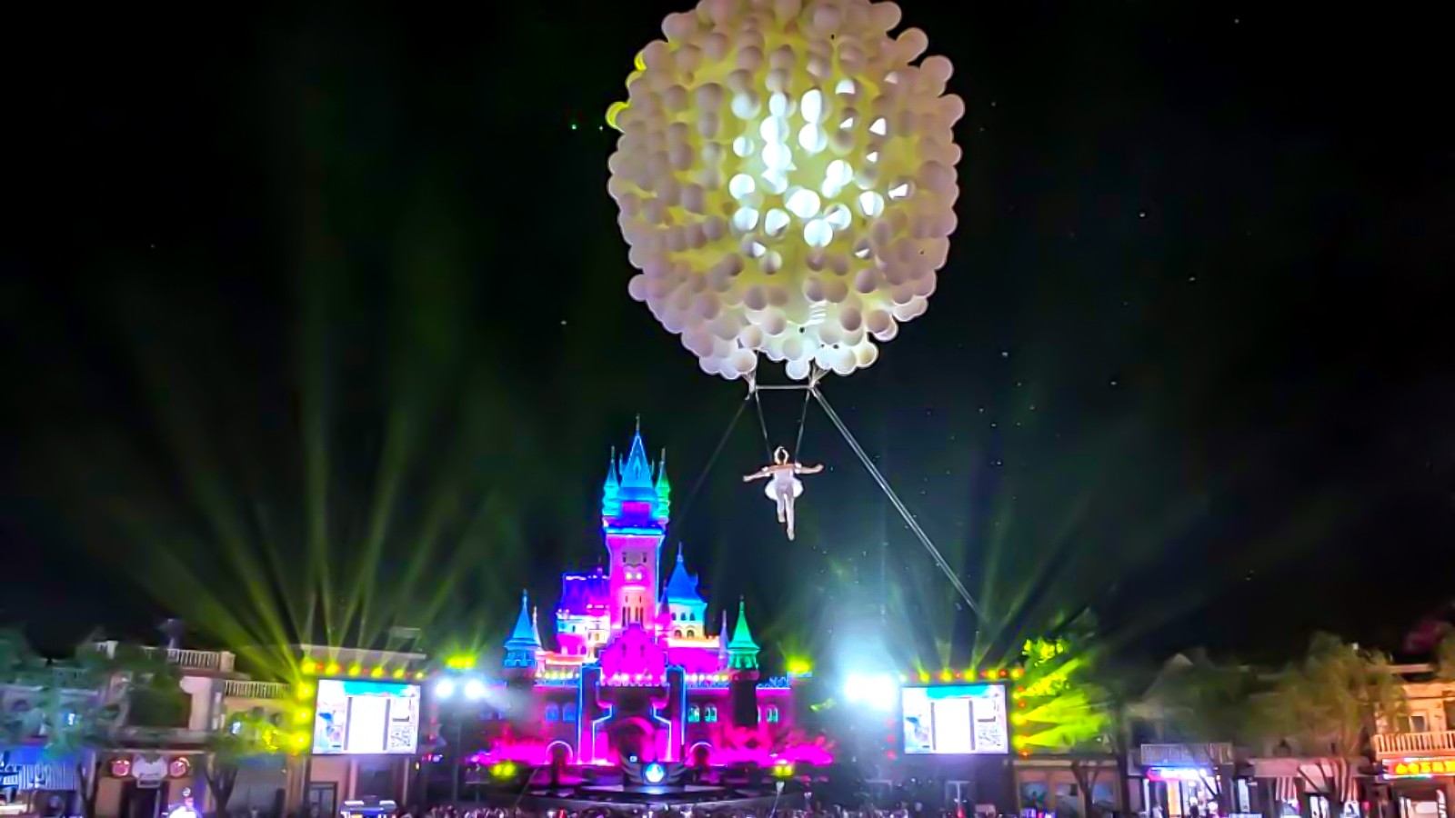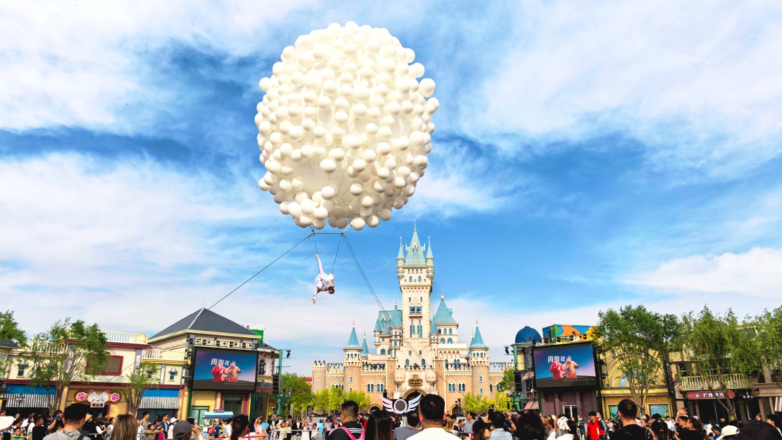 据介绍,活动期间,“熊出没森林舞会”“小丑嘉年华”等精彩演出也将轮番登场,“心动芭蕾”将重磅回归,演员将以天空为舞台,融合杂技与芭蕾技巧,为游客奉上精彩的“云端”演出;在梦幻巡游活动中,青春靓丽的演艺人员将伴随动感的音乐节拍欢乐起舞;在夜晚,游客还能在主舞台演出中,沉浸式欣赏“爆甜狂欢派对”,同时放飞“告白气球”,创造独属于5月的浪漫记忆。此外,每周五至周日20:45,乐园打造的限定版“怦然心动”焰火秀将璀璨绽放。届时,粉色焰火点亮夜空,与城堡上跳跃变换的投影、忽明忽暗的唯美极光交织成梦幻画卷,为游客打造极具仪式感的告白时刻。(天津方特供图)