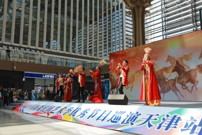 津滨网讯(记者 周华婷 张鹏 报道 贾磊 摄影)4月28日,首届中国新疆民间艺术季全国巡演从西安启程,沿东西双线将新疆最原生态的民间艺术带向全国。5月10日,满载天山儿女深情厚谊的“文化列车”驶入渤海明珠天津,在滨海新区文化中心开启精彩的主场演出,以多元艺术交融展现中华民族团结奋进的精神图景。