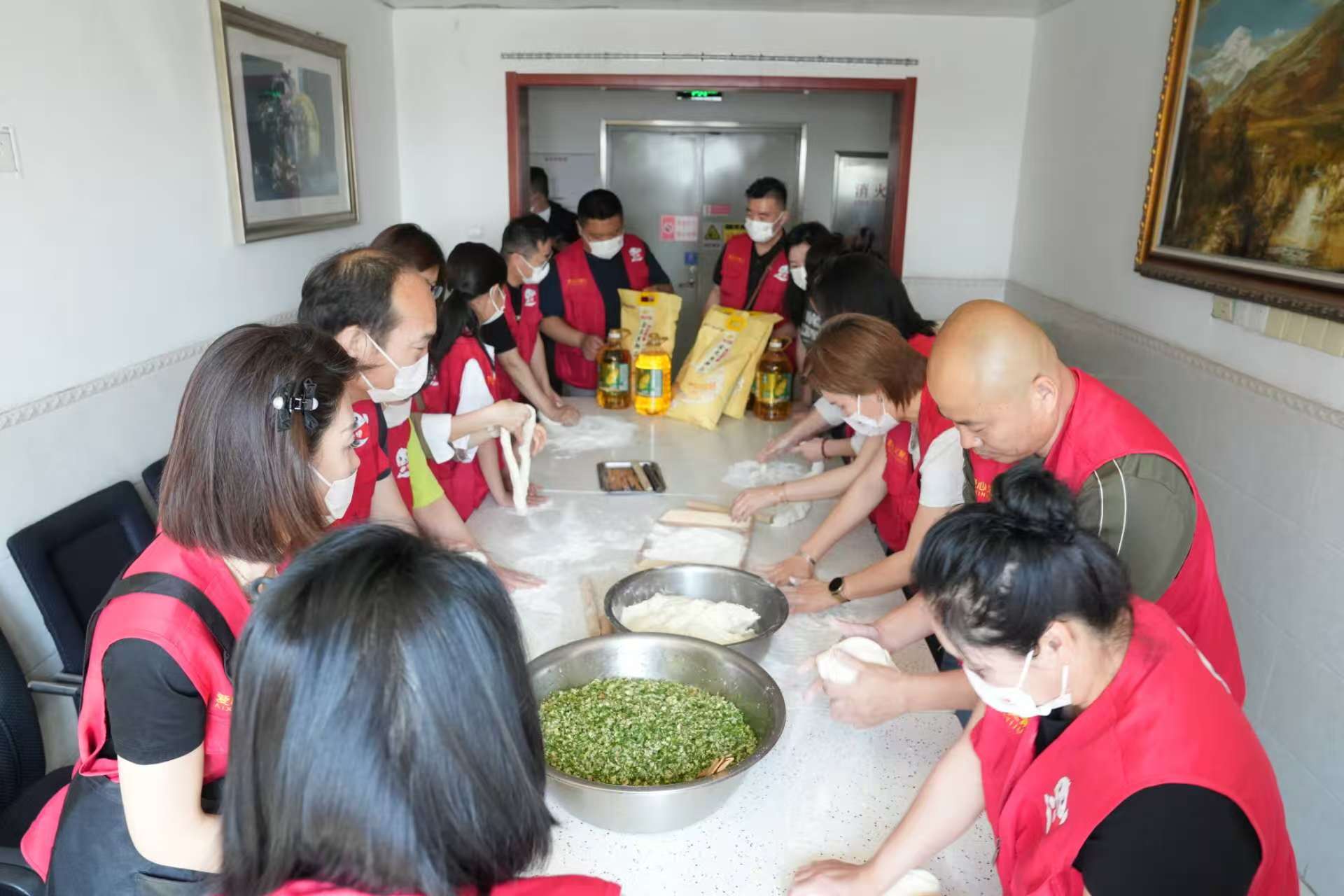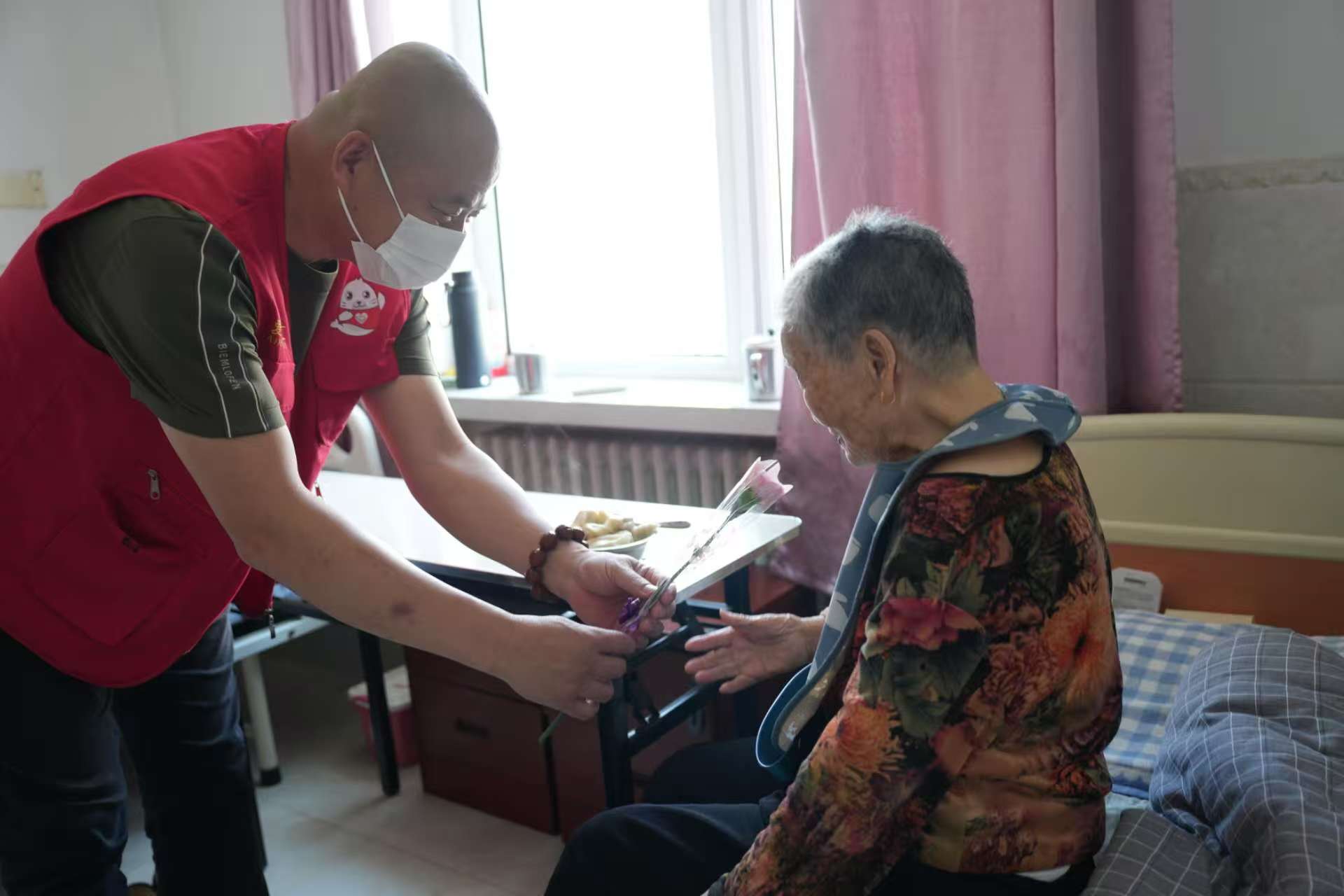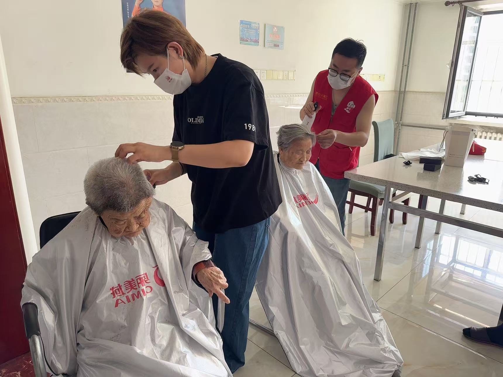 活动中,志愿者与老人们围坐在一起,边聊天边包饺子。和面、擀皮、调馅……大家一边包着饺子,一边互唠家常,在欢声笑语中感受“家”的温暖。与此同时,另一组志愿者则忙着为老人们理发,他们手法娴熟,老人们看着自己的新发型,露出满意的笑容。随后,志愿者们逐一把提前准备好的爱心捐赠物品和康乃馨花束送到每位老人手中,用实际行动传递着爱与温暖。活动结束后,志愿者们带着鲜花和饺子,走进行动不便的老人家中,了解他们的生活状况和需求,提供更多帮助和支持。