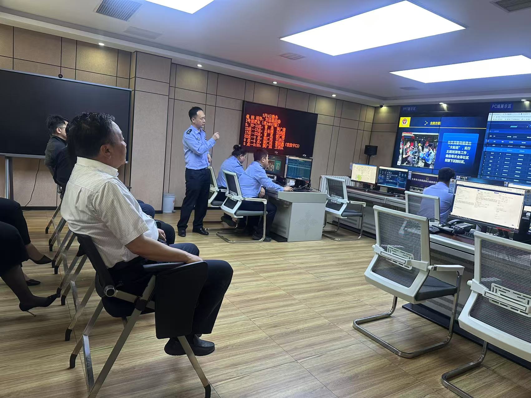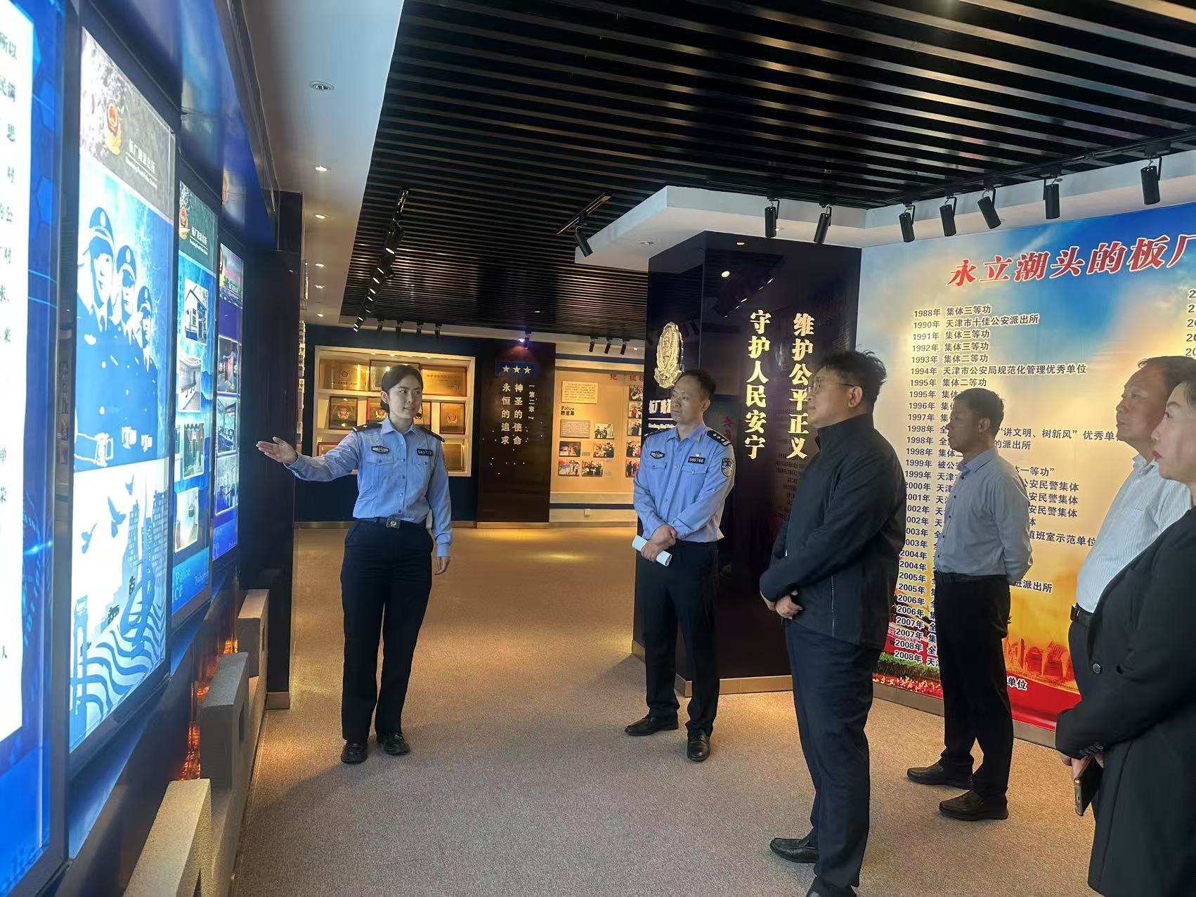 慰问活动中,在派出所主要负责人的带领下,区人大代表一行实地参观了接警大厅、调解室等办公区域,深入了解智慧警务建设成果及“枫桥式派出所”创建经验。大港板厂路派出所主要负责人向慰问一行介绍了派出所成长奋斗历程及建设工作情况。据悉,成立至今,板厂路派出所已经走过了35个年头。35年来,该所民警始终践行全心全意为人民服务的宗旨,忠诚履职、积极作为。面对日趋复杂的治安形势和繁重艰巨的公安工作,他们深刻领会“枫桥经验”实质内涵,努力做到“矛盾不上交、平安不出事、服务不缺位”,全力打造党建统领、民意引领、多元化解矛盾、全时空守护平安、零距离服务群众、内部管理规范、队伍建设过硬的“枫桥式公安派出所”。由于工作出色,板厂路派出所先后荣获全国“人民满意的派出所”“全国优秀公安基层单位”“全国公安机关执法示范单位”“全国一级派出所”“天津市特等劳动模范集体”等荣誉称号。