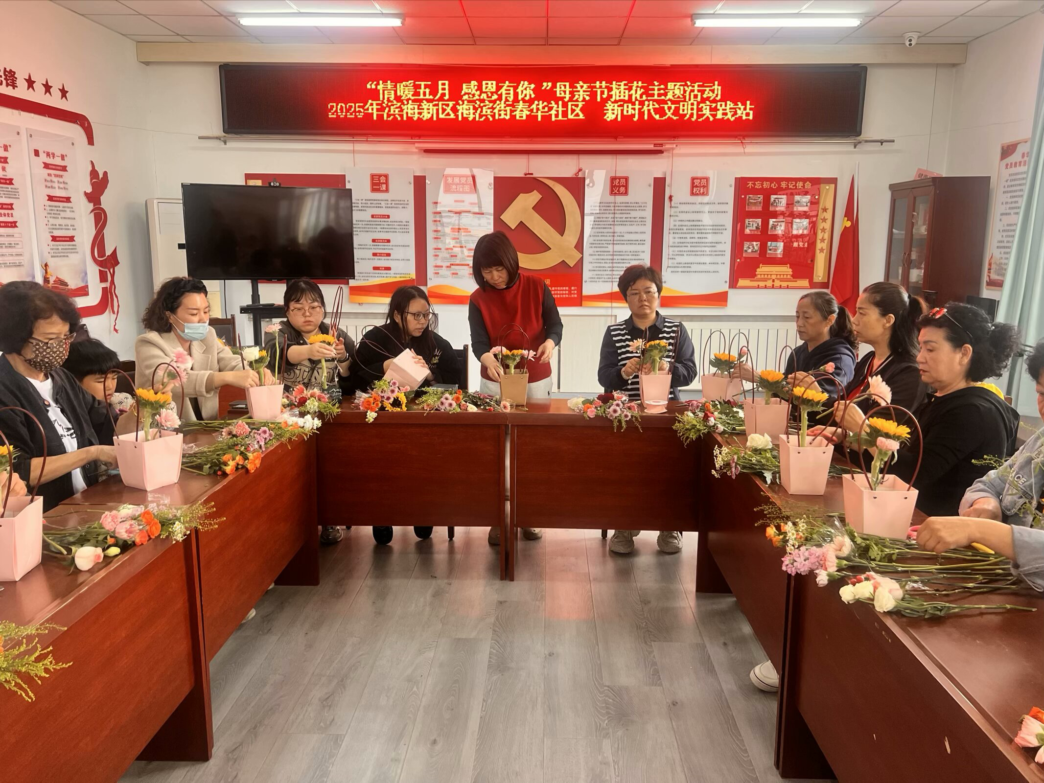 津滨网讯(记者 张爱萌 通讯员 李琤 摄影报道)为弘扬中华民族孝亲敬长的传统美德,丰富社区居民的精神文化生活,增进邻里之间的交流,近日,海滨街道春华社区组织辖区妇女开展了“情暖五月 感恩有你”母亲节插花主题活动。