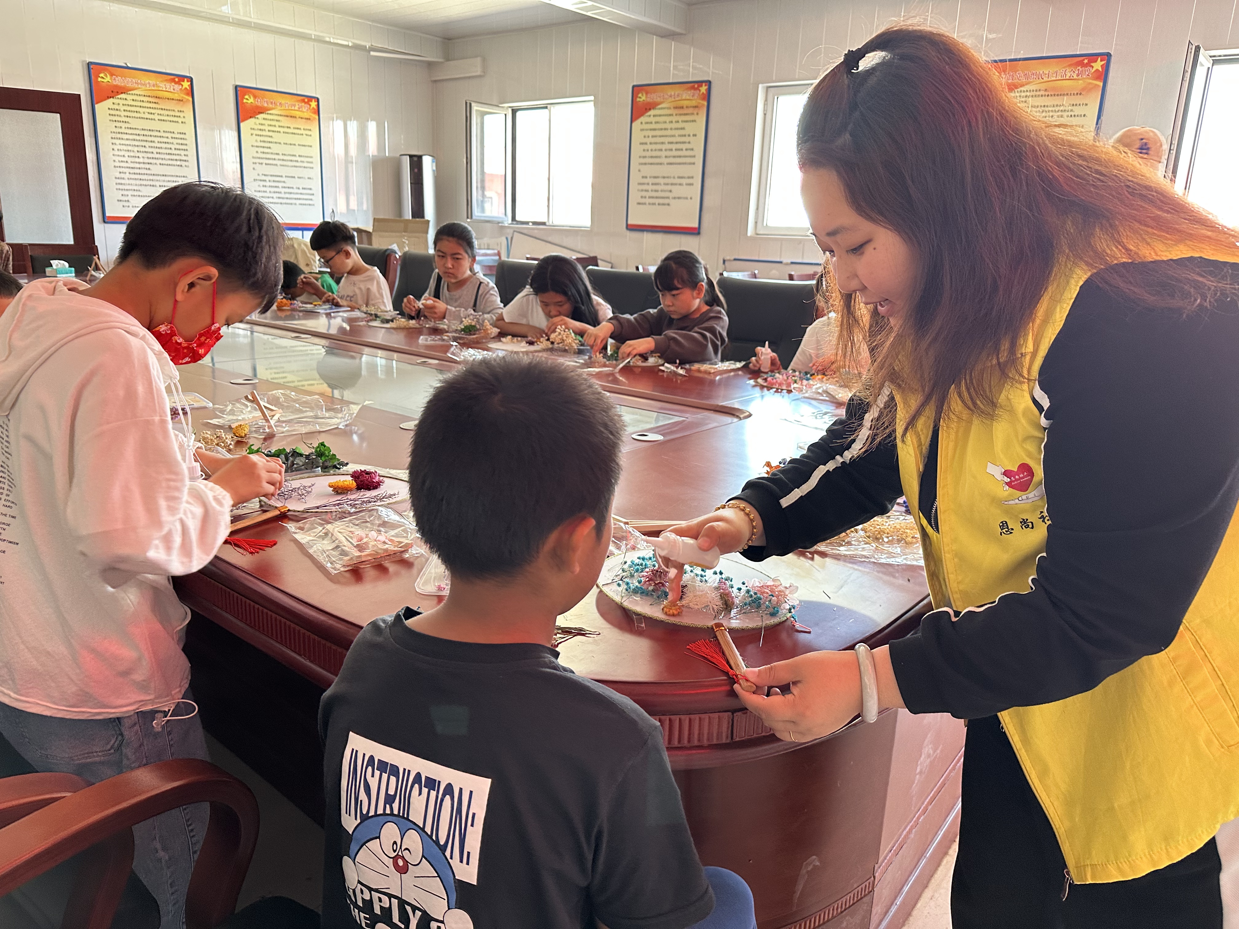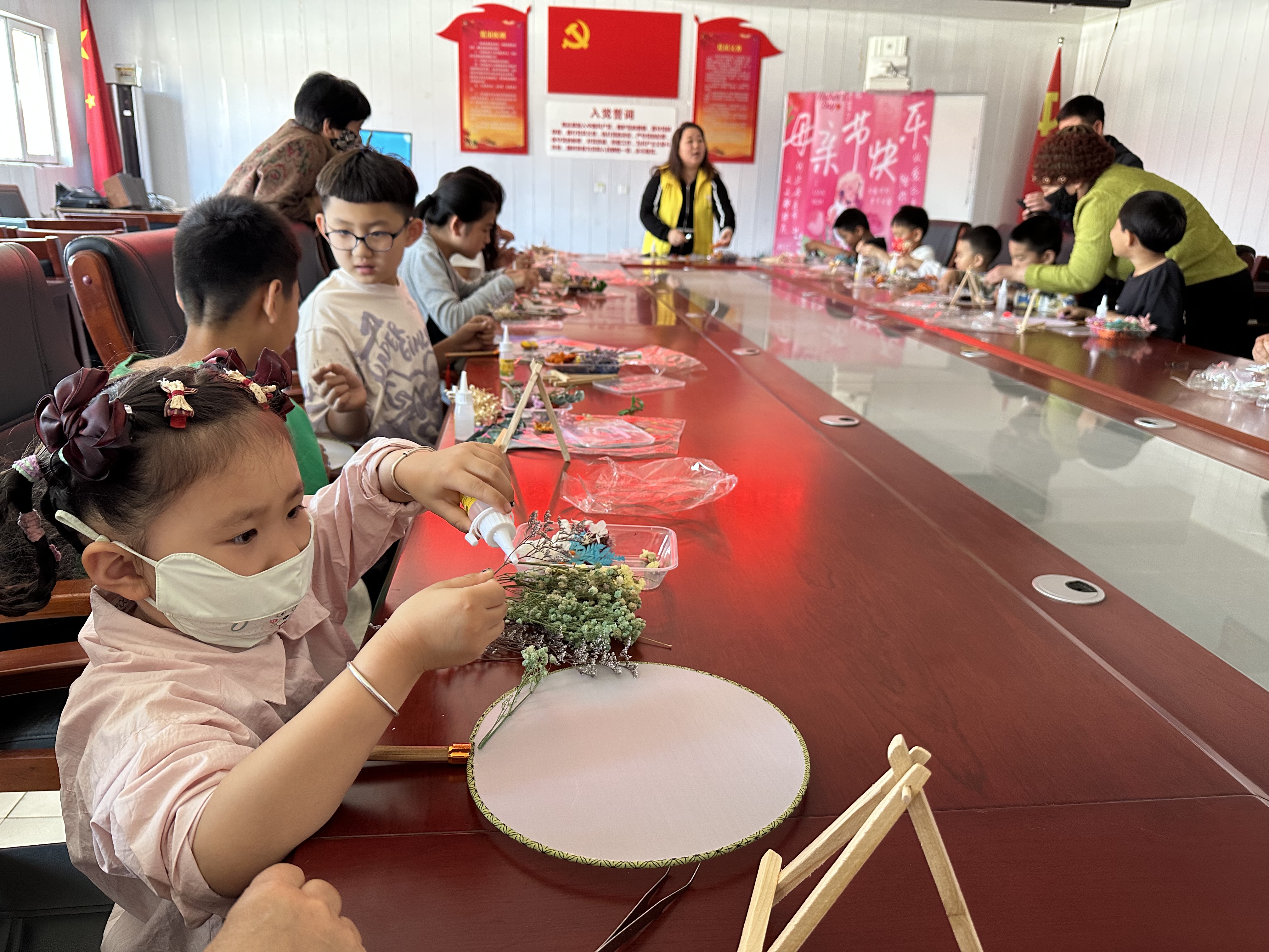 在制作过程中,孩子们时而专注思考,时而相互交流,现场气氛温馨而热烈。家长们也在一旁不时给予帮助和鼓励,亲子间的互动充满了浓浓的爱意。经过一个多小时的努力,一把把独一无二、饱含深情的干花团扇制作完成。