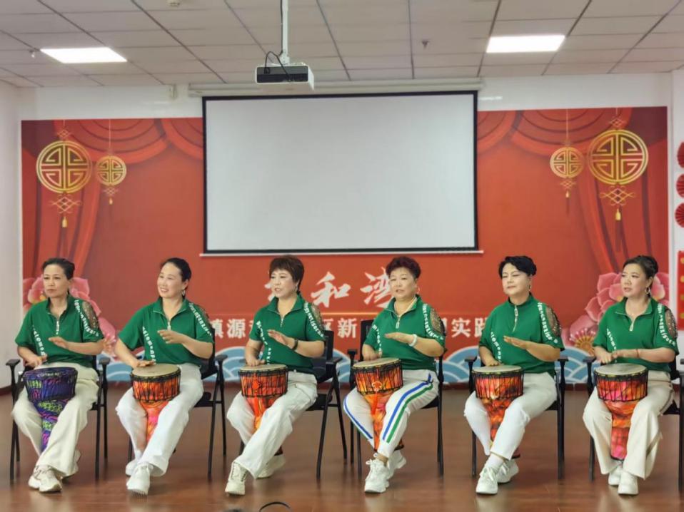 活动初始,社区工作人员为大家介绍了母亲节相关背景,社区志愿者团队为大家带来精彩的非洲鼓《亲爱的宝贝》、扇子舞《东方大国》、书法展示等节目,将大家带到了乡风朴素、母慈子孝的真挚感情里。随后编织老师介绍了向日葵的制作程序并示范讲解了编织技巧。居民们在老师的指导下,按照编织顺序,将彩线在指尖穿梭,制作出色彩亮丽的向日葵摆件。在制作过程中,居民们互相探讨技巧,积极向老师提问请教,现场气氛热烈。