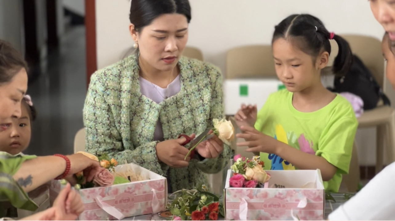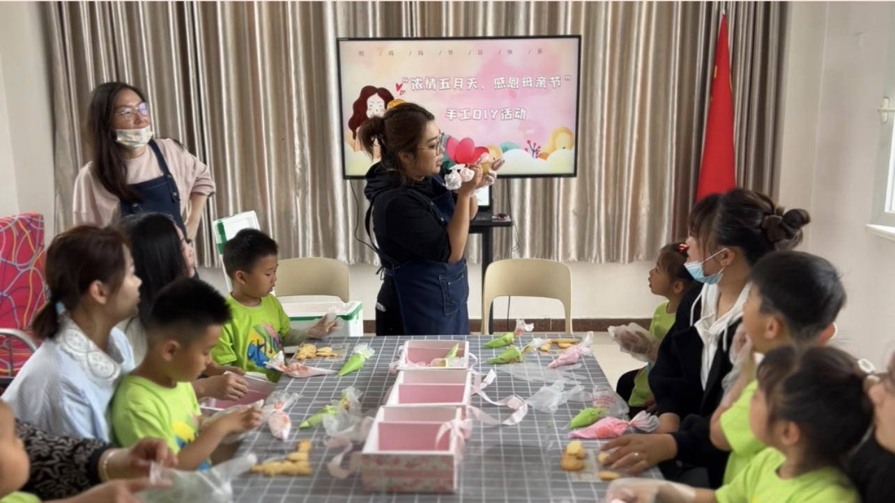 在温馨的活动室中,通过手工DIY制作,让亲子家庭共同完成“爱的礼物”,作品融入孩子对母亲的祝福语,现场温馨有爱。