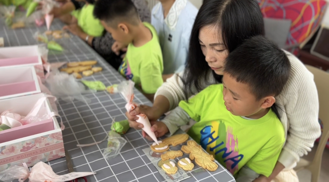 活动开始前,烘焙老师为大家分发了花朵饼干、奶油、鲜花等制作材料。在满是香甜的氛围中,活动开始了。烘焙老师首先为大家传授了一些日常生活美学知识,随后演示制作和烘焙流程,细心地为大家讲解食材、器具及注意事项。在一片欢声笑语之中,大家相互帮忙,交流分享着如何善待母亲,孝敬父母,教育孩子,用特殊的方式庆祝母亲节、表达对母亲节的祝福,暖心的场景让今年这个母亲节格外温馨。