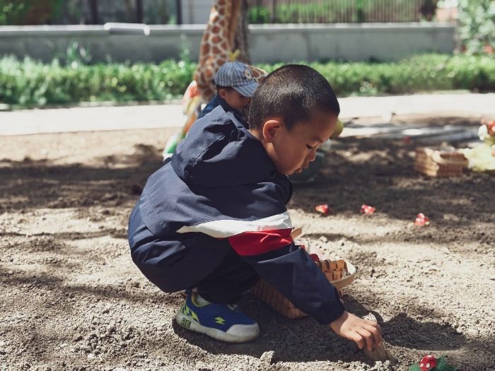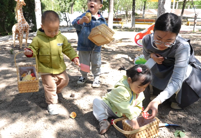 “今天的户外探索我们来挖蘑菇……”身处全国首个国家绿色发展示范区,又紧邻社区公园,公园内优美的环境和完善的设施,自然成为“星海宝宝”完成户外探索的绝佳去处。因此,玩沙、玩水、玩泥等户外自然探索课程早早被纳入了每周的课程体系,让孩子们在游戏的过程中实现身心全面发展。