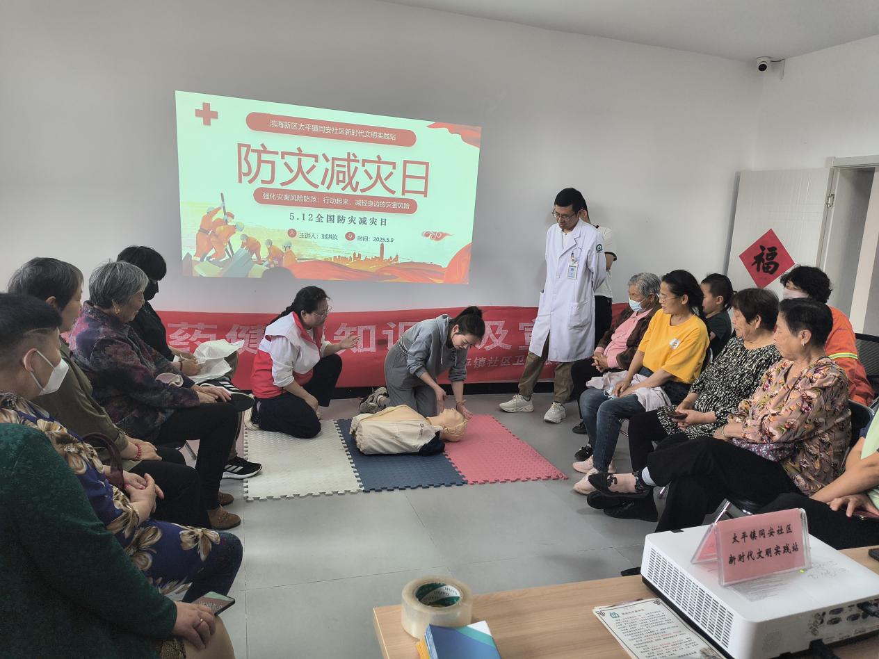 本次活动在同安社区新时代文明实践站开展,参与人员包括5名社区医生、1名红十字会救护讲师以及20余名社区居民。活动围绕防灾救灾常识普及、心肺复苏技能培训两大核心内容展开,旨在通过理论讲解与实操演练相结合的方式,切实提高居民应对突发灾害的能力。