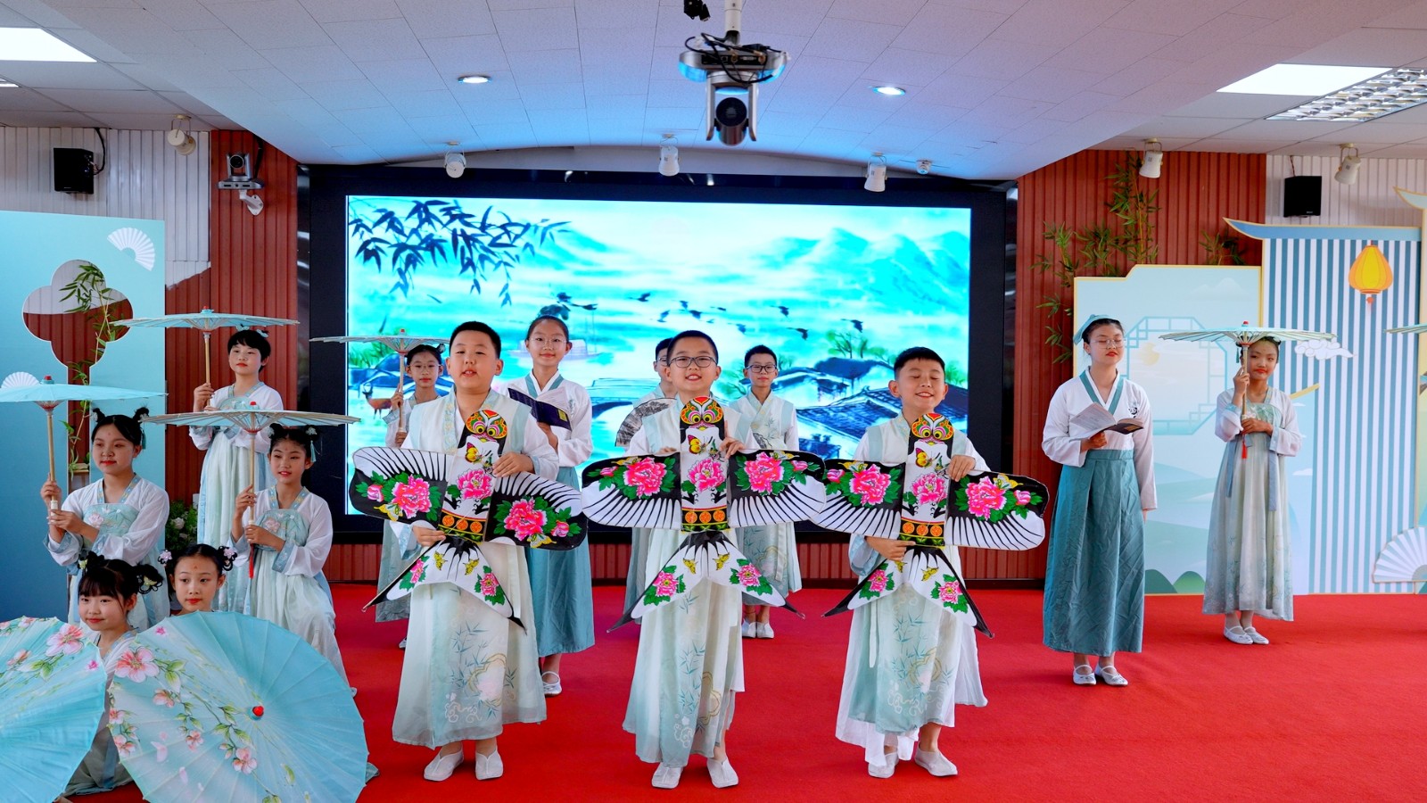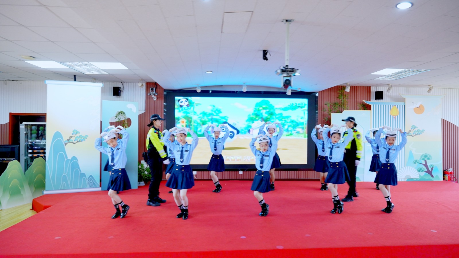 “修身齐家·天下大同”环节聚焦亲子阅读、安全教育与社区共建,融合教育性与趣味性:访谈《百家论道·共话书香》由学校、社区、家长、学生代表畅谈亲子阅读;音乐快板《奋进巾帼绽新花》充分展现妇联组织推进“三家”建设、投身改革发展的坚定步伐;情景剧《明辨安危·护幼有道》通过模拟校园安全场景,强化青少年风险防范意识;交警操《礼行天下·交规入心》、消防知识讲座《火线智勇·家国同行》以互动形式普及安全知识;国风秀《华夏霓裳·家风雅秀》将传统服饰与家风元素巧妙结合,传递家国情怀与文化自信;诵读《君淑立志文》让经典国学在琅琅书声中传承。