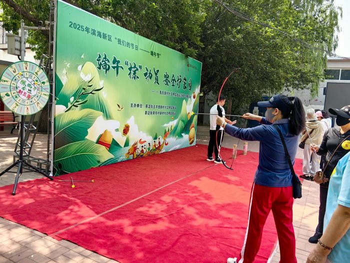 安全是社区生活的基石。活动现场精心设置了多个充满端午特色的趣味项目,“旱地龙舟赛”中,队员们团结协作在赛道上飞驰;指压板运粽子趣味十足,让大家痛并快乐着;“端午投壶”项目前围满了人,参与者手持箭矢,瞄准壶口投掷;“射五毒”项目参与者蓄力拉弓,气氛紧张又热烈。比赛过程中,选手们热情高涨、奋勇争先,加油助威声此起彼伏。无论是身手矫健的青年组还是老当益壮的老年组,都沉浸在运动的乐趣中。大家在赛场上相互鼓励,默契配合,充分展现了积极向上的精神风貌和团结协作的团队精神。