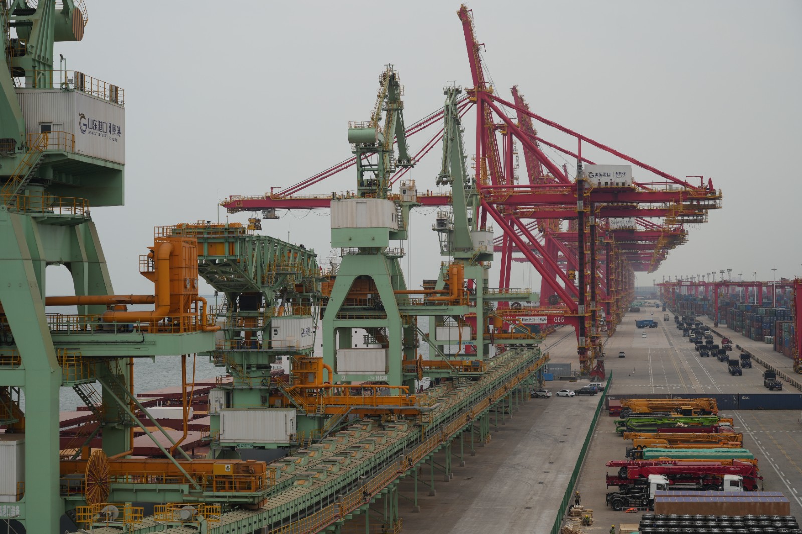 津滨网讯(记者 梅传众 张广艳 张雪艳 李楠 通讯员 夏德崧 山东日照摄影报道)日照港依海而建,因港口发展带动城市繁荣。5月23日,调研团进入日照港,映入眼帘的是一片繁忙生产景象:输运管廊沿着海岸线延伸,红色岸机与蓝色大海相映成趣,不远处大型货轮稳稳停靠在泊位,各类机械设备一刻不停地运转……谁能想到,这座全球最年轻的 5 亿吨大港,是从一片荒滩起步,从单一煤炭码头逐步发展成综合性大港,如今正朝着世界一流海洋港口的目标稳步迈进。