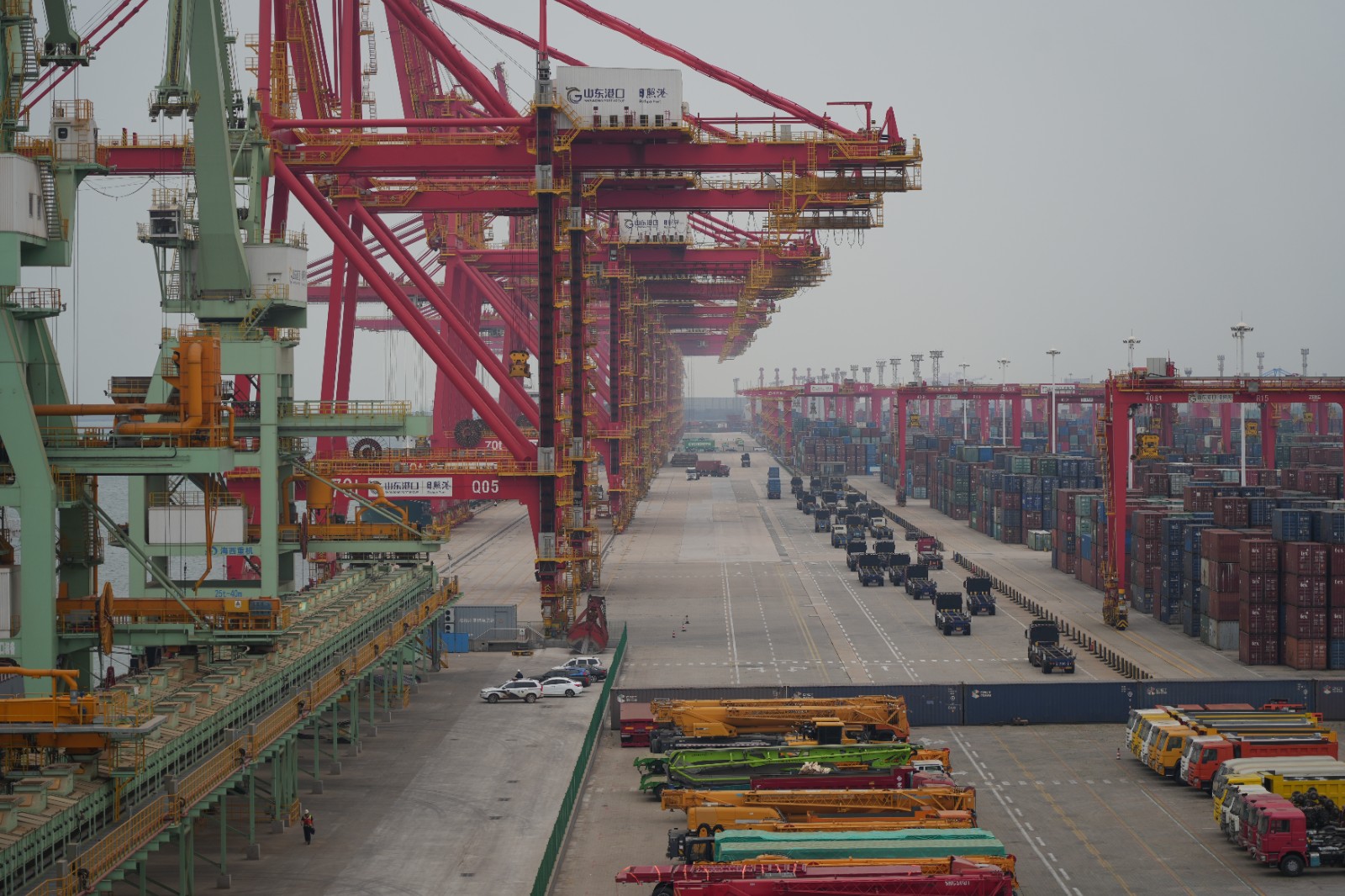 日照港因煤而生,过去港区里煤尘飞扬场景是很多人对于日照港的最初印象。作为全球大宗原材料、能源、粮食等的供应链枢纽,大宗干散货占据日照港吞吐量的半壁江山。当调研团穿梭在日照港的港区时看到,堆积如山的煤炭、矿石迎面扑来。然而,与传统干散货码头不同,这里看不到煤渣散落、尘土飞扬的场景。目前,在日照港石臼港区南作业区,大宗干散货智慧绿色示范港口一阶段已建成启用,传统港口人工摘钩、铁锨清车、尘土飞扬的场景彻底消失。全货类适用、全流程互通、全系统智能的大宗干散货作业体系,通过200多条作业流程灵活串联各泊位、堆场,实现“从卸船到装车”“从卸车到装船”全流程自动化贯通。