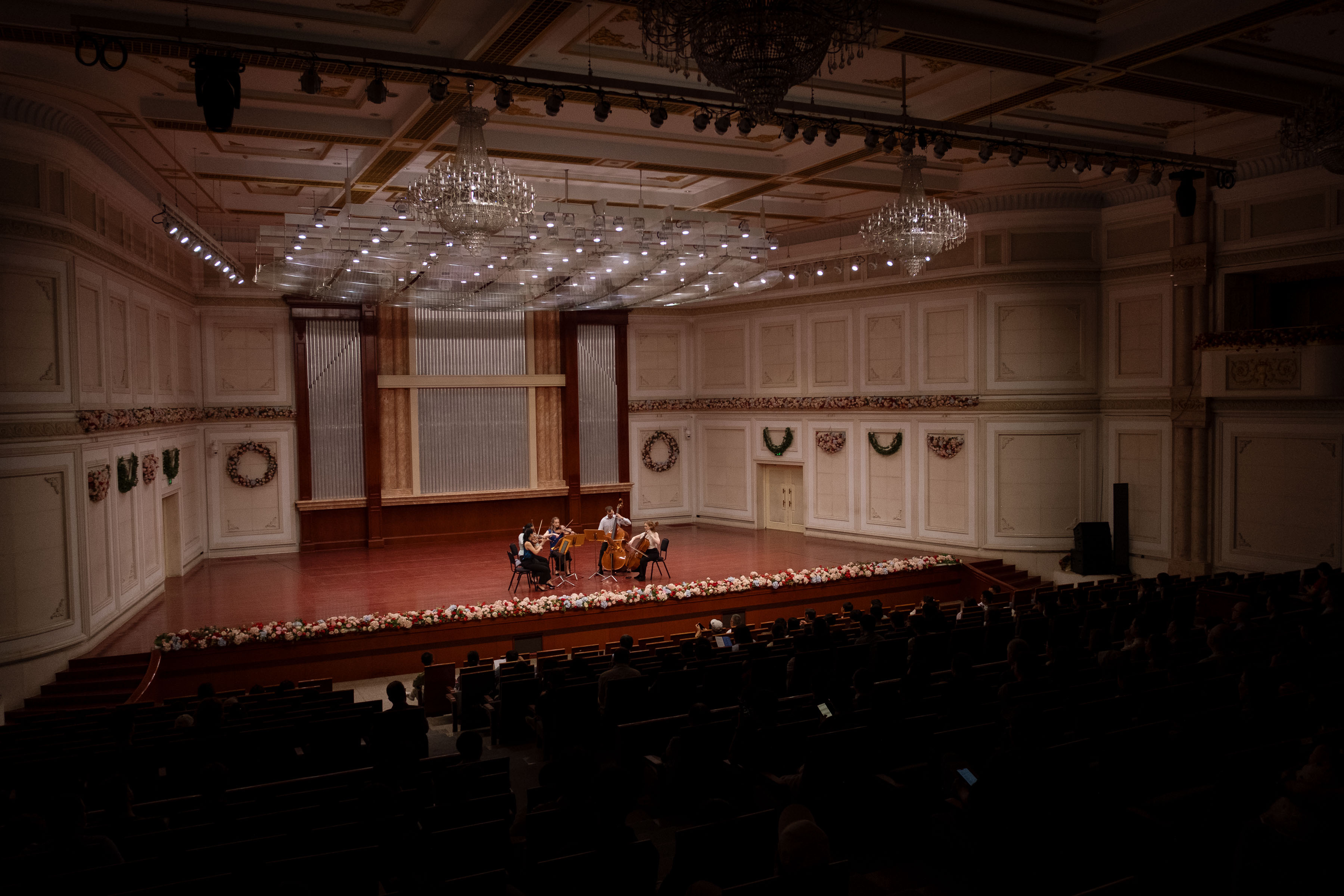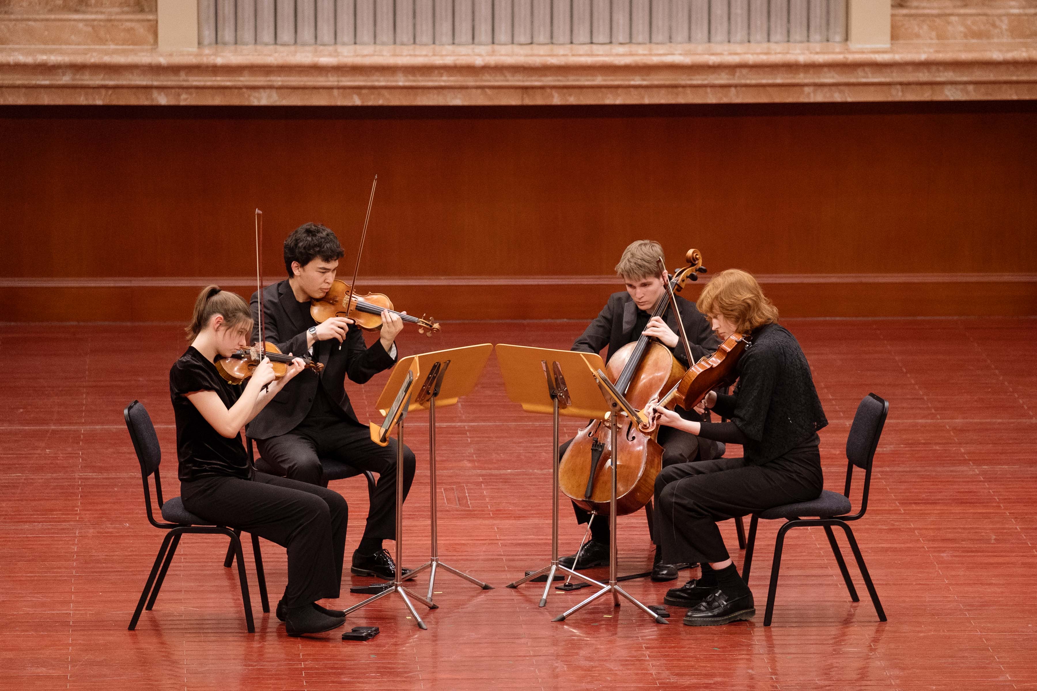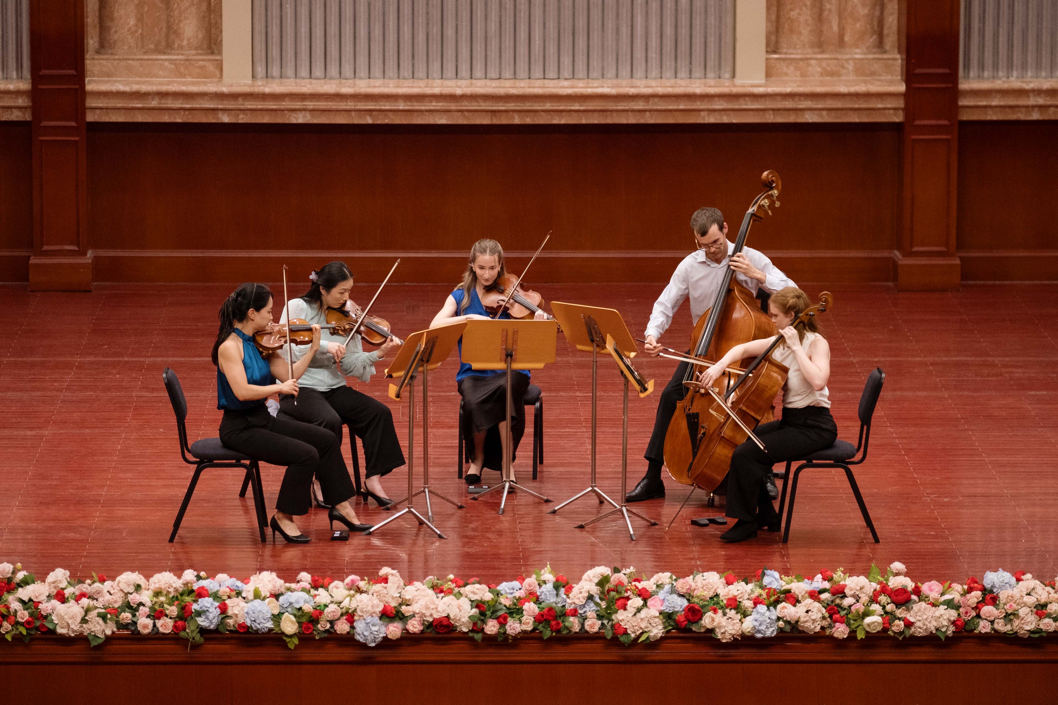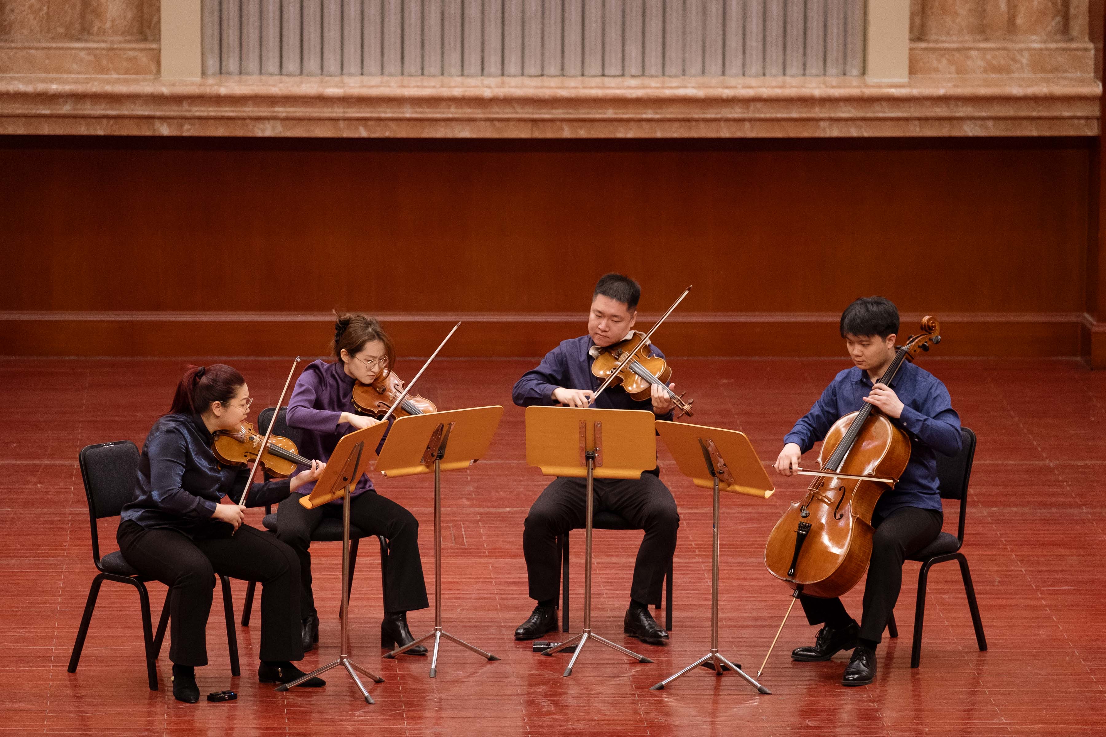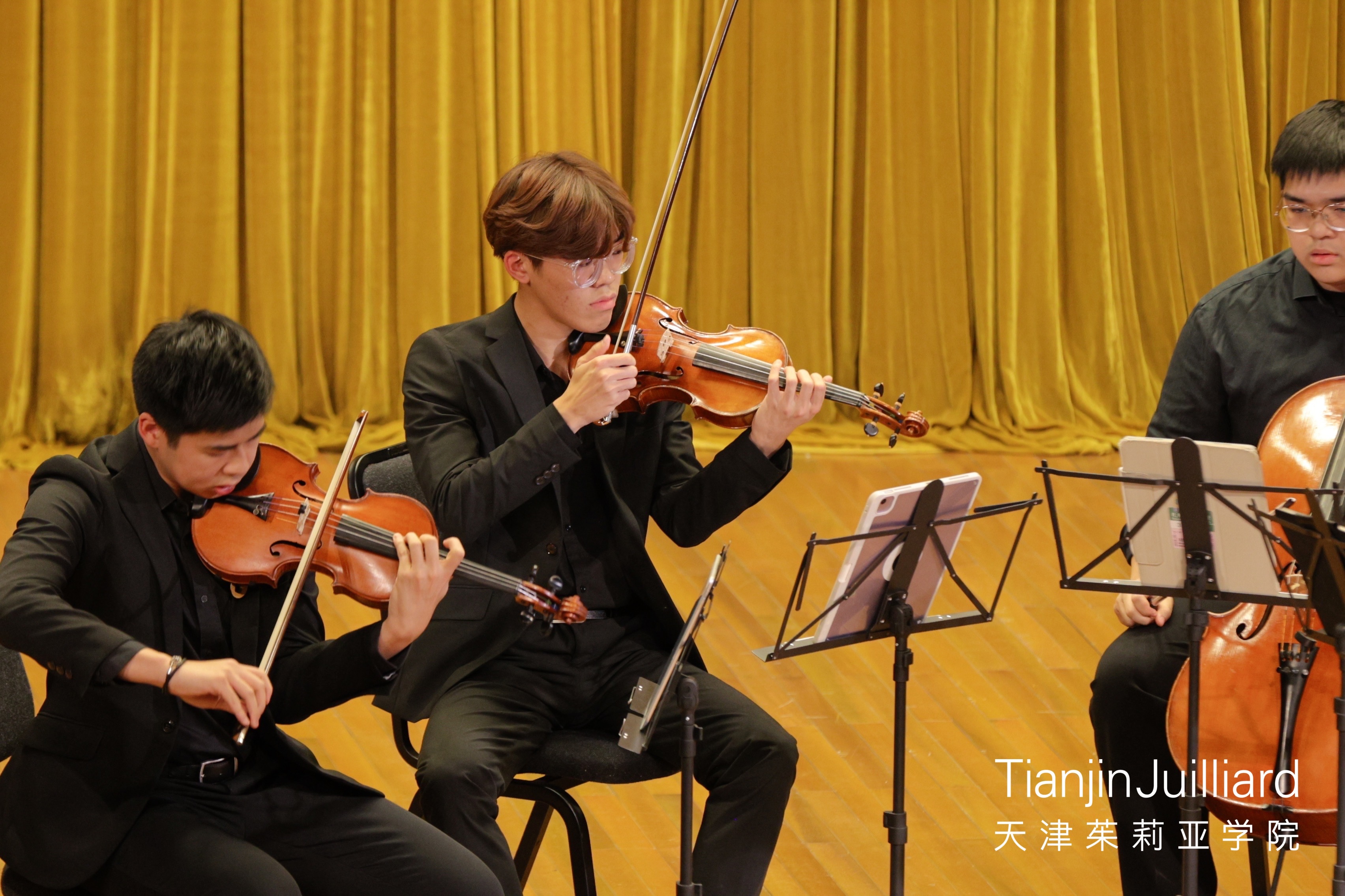 26日晚上7点半,天津茱莉亚常驻教师四重奏——上海四重奏,携手常驻教师、中提琴家李汉娜(Hanna Lee),以及韩国艺术综合大学音乐学院院长、大提琴家李康豪(Kangho Lee)联袂呈现开幕音乐会,用精彩的音乐表演为此次管弦乐研讨会暨领导力论坛拉开了序幕。