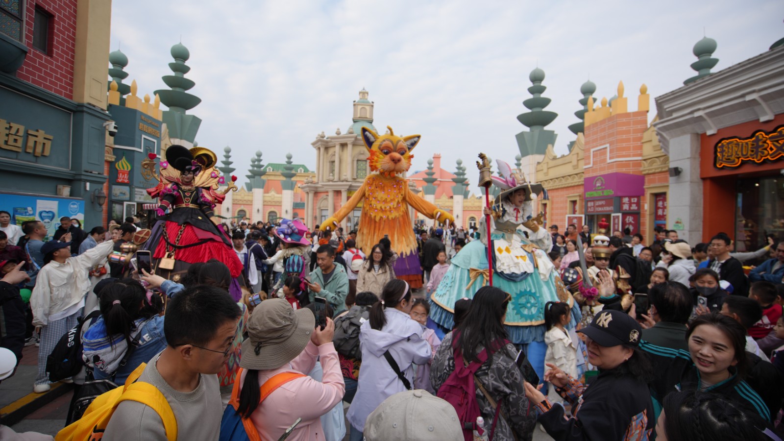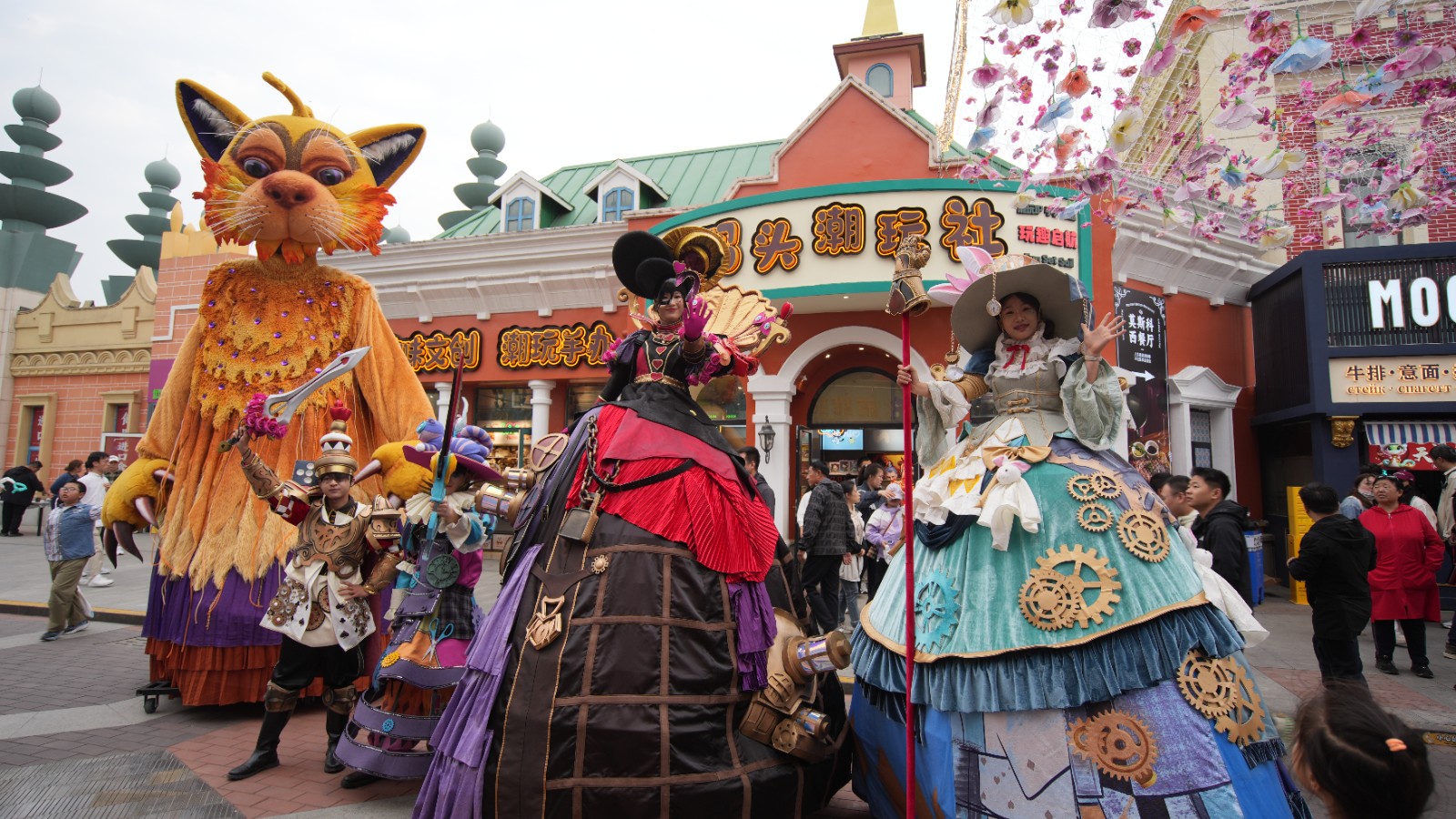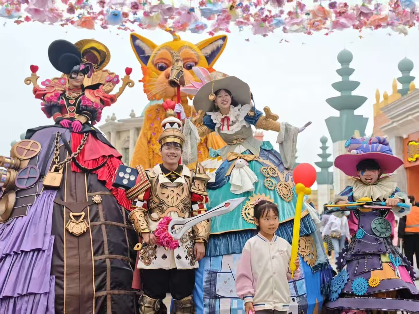 记者了解到,全年龄段游客在园区“可玩、可赏、可尝、可学”。活动期间,全园沉浸式童话演绎活动将惊喜延续,5米高巨型布莱猫将化身童话使者,领衔《蒸汽朋克爱丽丝奇幻之旅》空降文化商业街,与红心皇后、疯帽子等经典角色开启零距离魔法互动,带领游客走进奇幻美学与童话叙事的绮丽叠影;治愈系“航母三小只”吉福、抱豹、妃妃将同步开启全天候街头萌动快闪模式;小丑先生也将在街头即兴派发欢乐,丰富游客游园体验。(泰达航母主题公园供图)