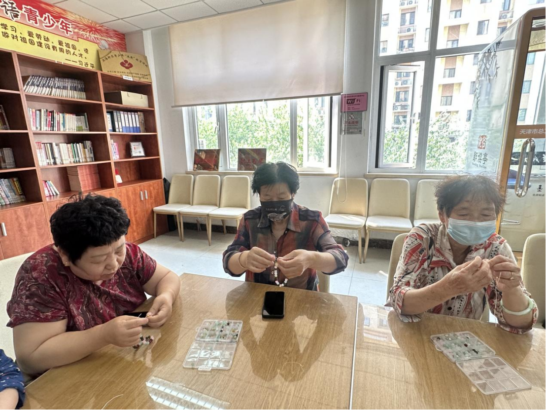津滨网讯(记者 张伟婷)近日,胡家园街道星海苑社区联合老年日间照料中心、阳光树口腔医院开展了“珠连端午韵,手作寄平安”手工制作活动。