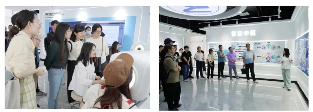 活动伊始,教师们在中国电科天津留学人员创业园工作人员引导下,全方位了解了园区发展蓝图,并实地探访了园区入驻企业代表—依脉人工智能医疗科技(天津)有限公司(以下简称“天中依脉”)。作为中医现代化诊疗装备及人工智能技术领域的国家高新技术企业和集团化公司,天中依脉展示了其前沿研发成果,让教师们深入了解现代化中医诊疗装备的研发历程,体验企业自主研发的中医智能辅助诊断系统和大数据管理云平台,真切感受了人工智能赋能医疗健康领域的澎湃力量。在“大咖面对面”环节,天中依脉董事长周鹏和钠坤碳源董事长张俊,以亲历者的身份分享了企业跨越“从实验室到产业化”的发展历程。