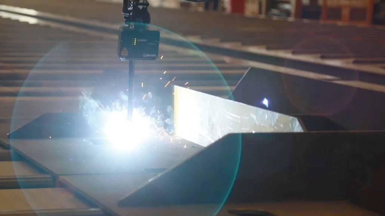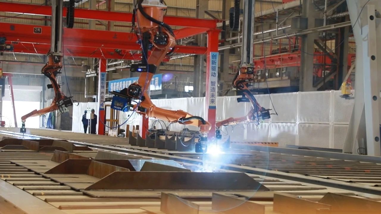 小组立智能产线占地面积约4500平方米,汇聚了众多先进的智能化设备。自动化翻板机可在3分钟内完成大型拼板构件的翻板工作,相较传统人工操作,效率提升数倍。4台搭载多传感器融合技术的9轴焊接机器人,无需人工示教即可实现稳定焊接,焊接缺陷率低于5%,月产能高达4500吨,极大地提升了工作效率与焊接质量。智能背烧机通过精确控制背烧参数,将背烧效率提高50%,并借助智能集控中心实现数据的收集、记录与分析。