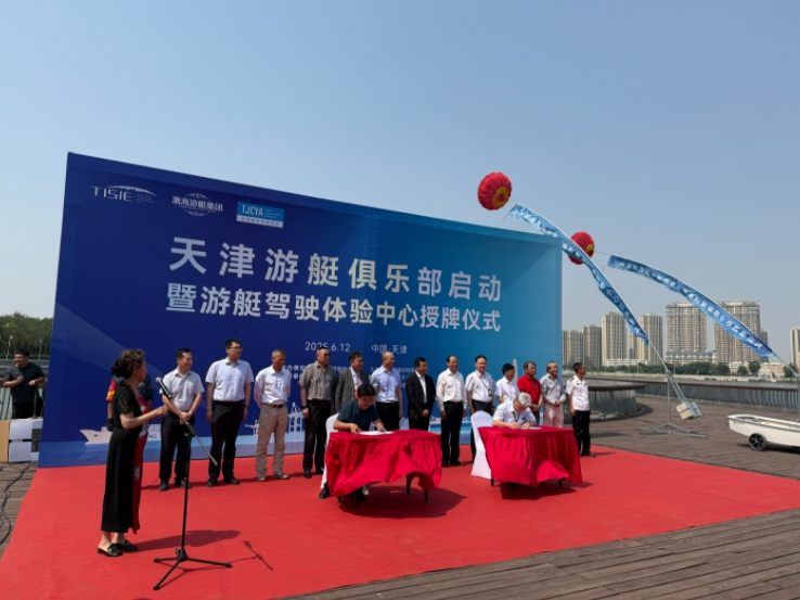津滨网讯(记者 郑超越 摄影报道)6月12日,由天津邮轮游艇协会主办,天津市文化和旅游局、天津海事局、天津市港航管理局、中国交通运输协会邮轮游艇分会支持的“驭浪启航・津韵新程——天津游艇俱乐部启动暨游艇驾驶体验中心授牌仪式”在滨海新区响螺湾彩带公园游艇码头举行。这场汇聚行业精英、政企代表的盛会,不仅是天津游艇产业发展的里程碑,更吹响了城市文旅融合升级的奋进号角。