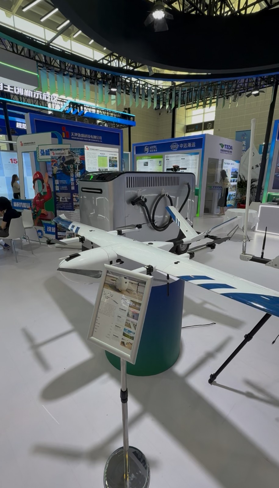 同时,在天津经开区展区里,一系列先进的装备制造产品集中亮相,其中一架精致的无人机格外引人注目。“这款QP530A无人机在性能表现上十分亮眼,其有效航时可达3.5小时,遥控遥测作业半径可达80公里,满足长时间、长距离的侦察需求。在技术创新方面,该无人机支持旋翼锁桨功能,大幅降低能源消耗,并配备地景定位功能,即使遭遇GPS信号丢失的情况,也能完成一个自主的飞行任务。同时,空速管加热设计使无人机能够在极寒环境的作业场景中稳定运行。”致导创新(天津)科技有限公司大客户经理张云介绍说。
