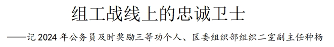 2024年下半年,种杨总结近年来选人用人专项检查、个人有关事项报告、干部日常监督管理中发现的典型问题,梳理出干部队伍建设统筹谋划不够、年轻干部培养选拔不到位、有关专项整治不彻底等25类专题,选取106个典型案例,并找出案例背后的政策文件依据,汇编成《干部监督工作典型问题案例选编》,为各单位对照检查提供重要参照。针对日常监督管理工作中发现的领导干部在社会团体、企业兼职清理不彻底、审批不规范等问题,编印了《规范领导干部兼职工作有关政策规定汇编》,指导全区深入自查自纠。他还深入总结新区“一把手”监督的经验做法,被《中国组织人事报》以深度报道稿的形式刊发。