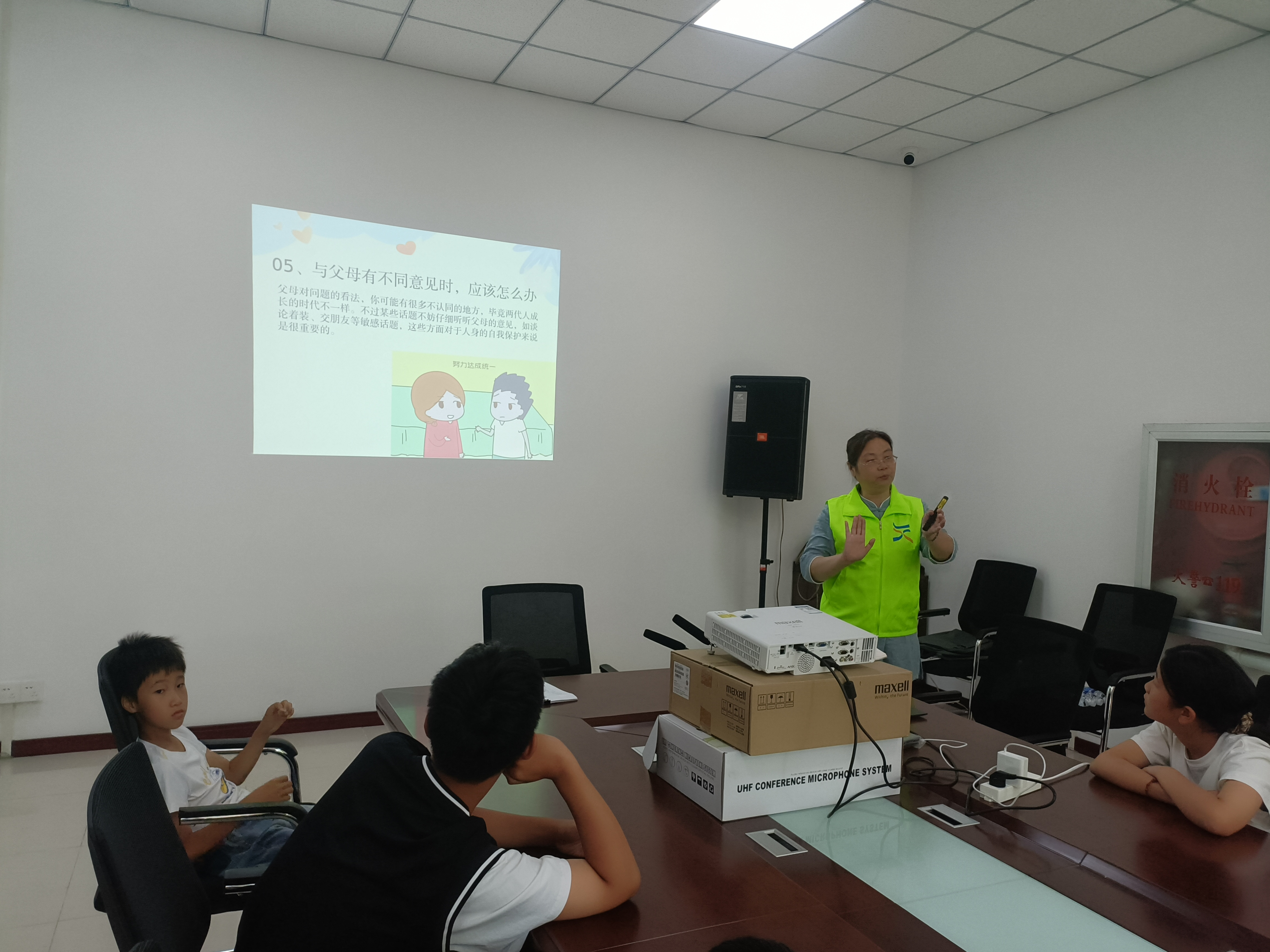讲座现场,姜老师凭借丰富的专业知识和实践经验,以生动鲜活的案例、幽默风趣的语言,围绕“认识情绪”“压力管理”“人际交往”“青春期与父母沟通”等青少年常见的心理问题展开深入讲解。为了让孩子们更好地理解和掌握相关知识,姜老师巧妙运用情景模拟、互动问答等多种形式,引导孩子们深入探索自身情绪世界,正确认识情绪的起伏变化,并传授给他们调节焦虑、紧张等负面情绪的实用技巧。