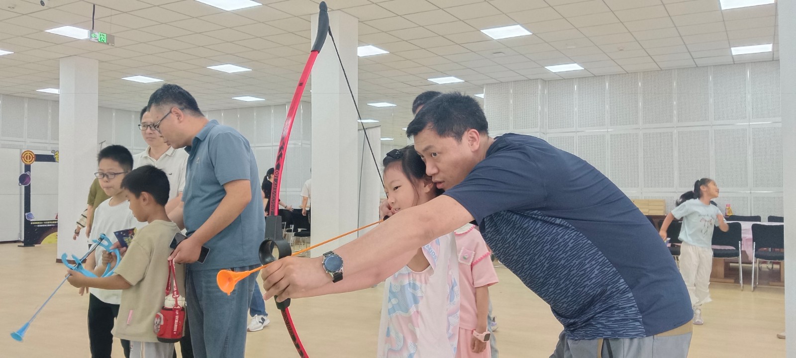 活动当天,参加活动的职工家庭在工作人员和志愿者的引导下有序签到并领取集章卡纸。父亲节主题打卡区成为全场“人气王”,职工父亲与孩子们纷纷驻足,用镜头记录下幸福的亲子瞬间,活动序幕正式拉开。亲子运动会是此次活动的“重头戏”。“巨精准足球”区域,职工和子女组合展开激烈对抗,小型球门见证着他们的默契与拼搏。“超人平板撑”项目充满挑战与温情,孩子或坐或趴在父亲的背上感受着父爱的力量。“百发百中射箭”场地,父子依次搭弓射箭,当利箭射中红心时,现场掌声雷动。