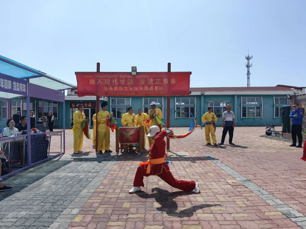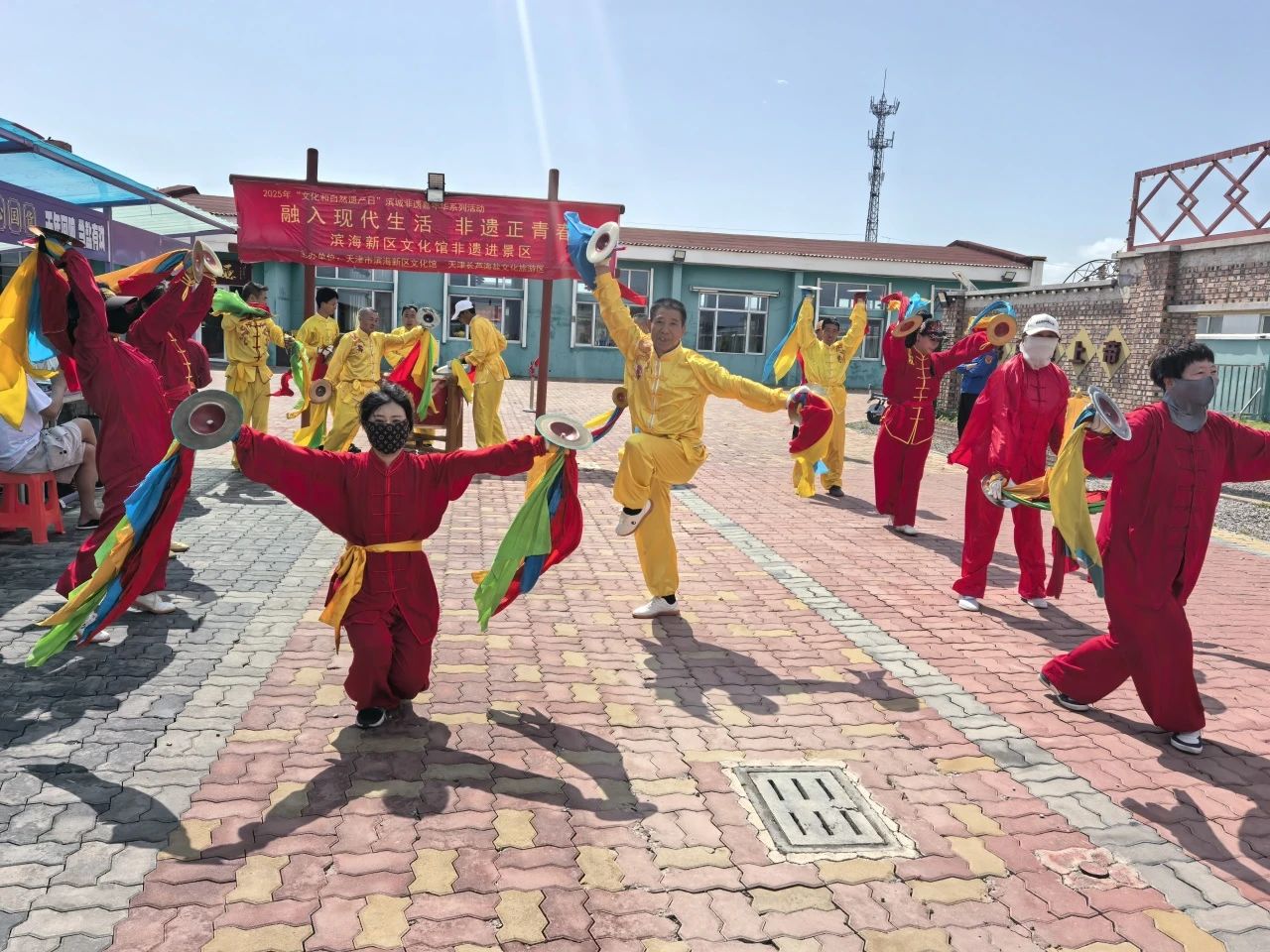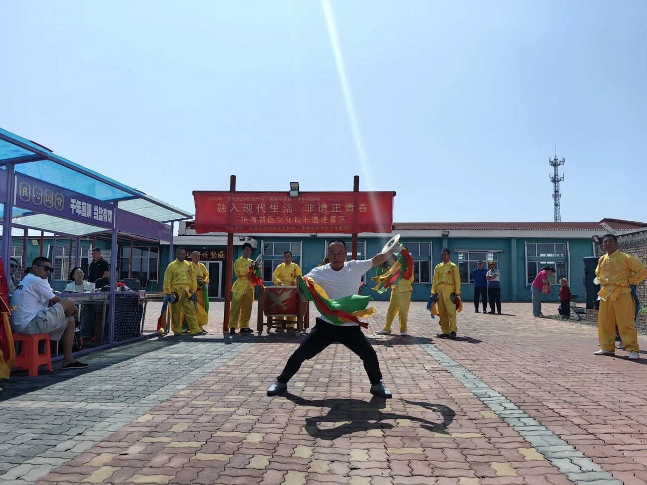 津滨网讯(记者 周华婷 报道 张鹏 摄影)为推动非物质文化遗产保护与传承,6月15日,由滨海新区文化馆、天津长芦海盐文化旅游区主办的2025年“文化和自然遗产日”滨城非遗嘉年华系列活动——“融入现代生活 非遗正青春”非遗进景区主题活动在汉沽盐业风情游览区举行。此次活动将国家级非遗项目汉沽飞镲的磅礴展演与非遗精品展卖融合,让古老的非物质文化遗产在充满历史底蕴的盐场景区焕发出鲜活的生命力。