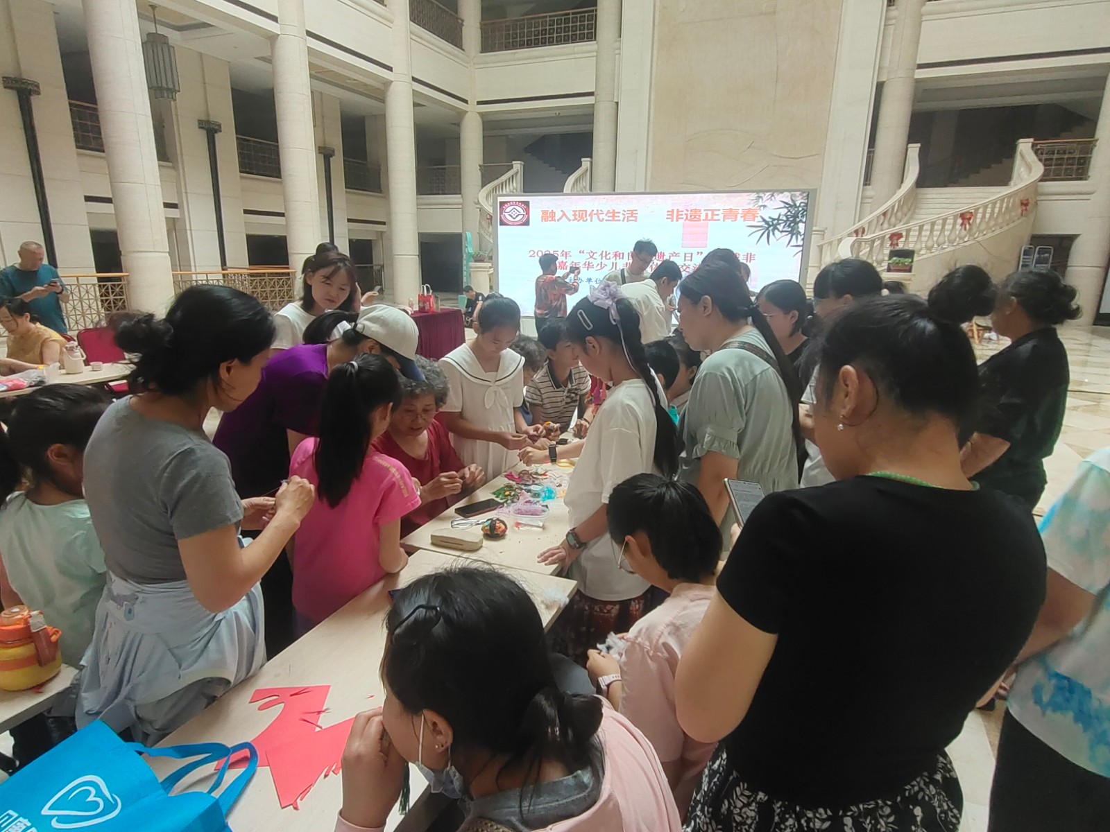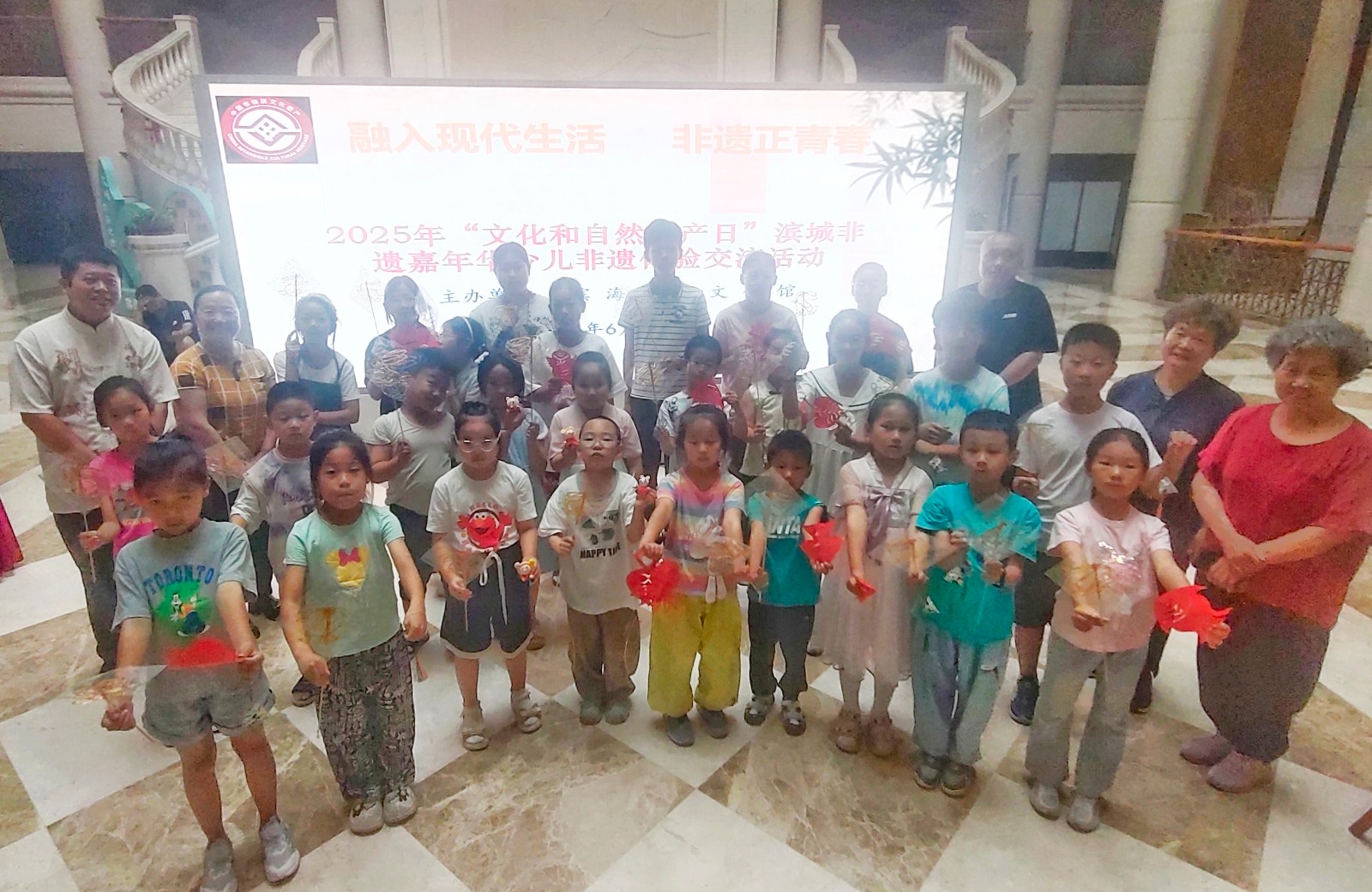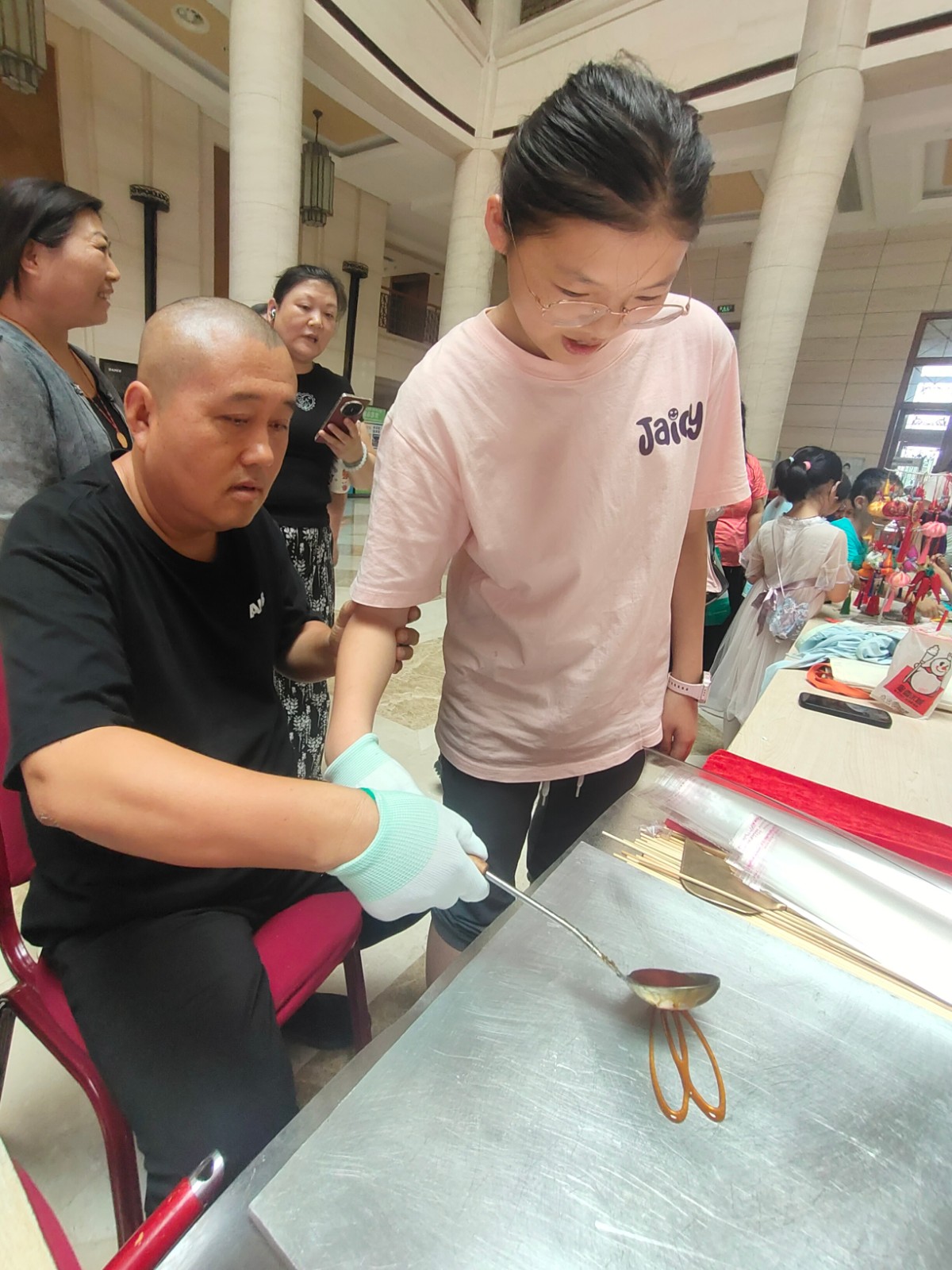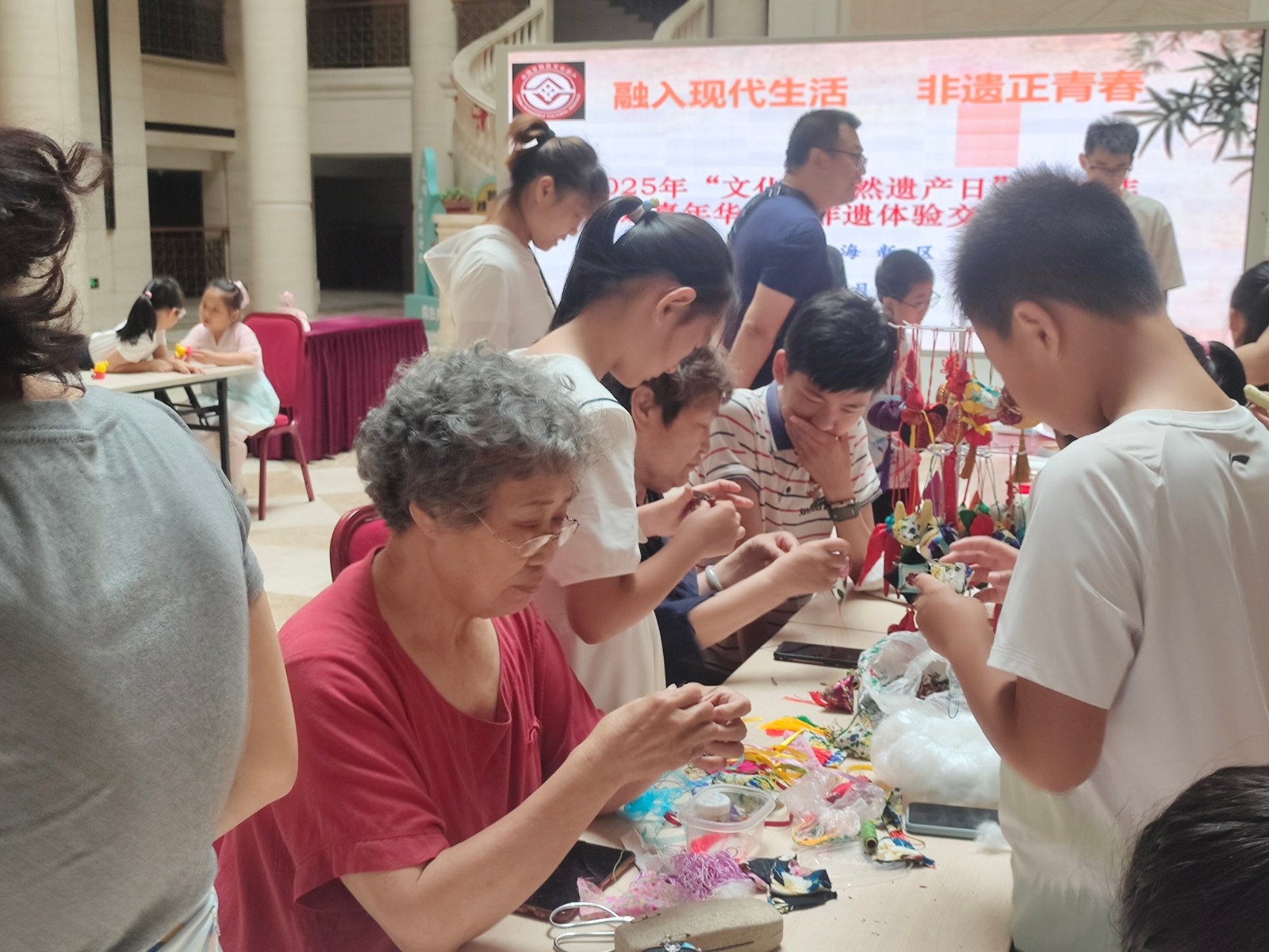 活动邀请市级非遗项目面人王工艺传承人王永艳、大港剪纸传承人单瑞金、区级非遗代表性项目大港女红民间艺术传承人曹俊姑、糖画王制作技艺传承人王拥军为青少年讲解非遗知识和项目特色,让孩子们体验简单的非遗项目制作。