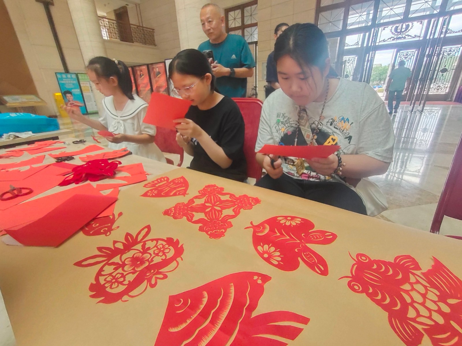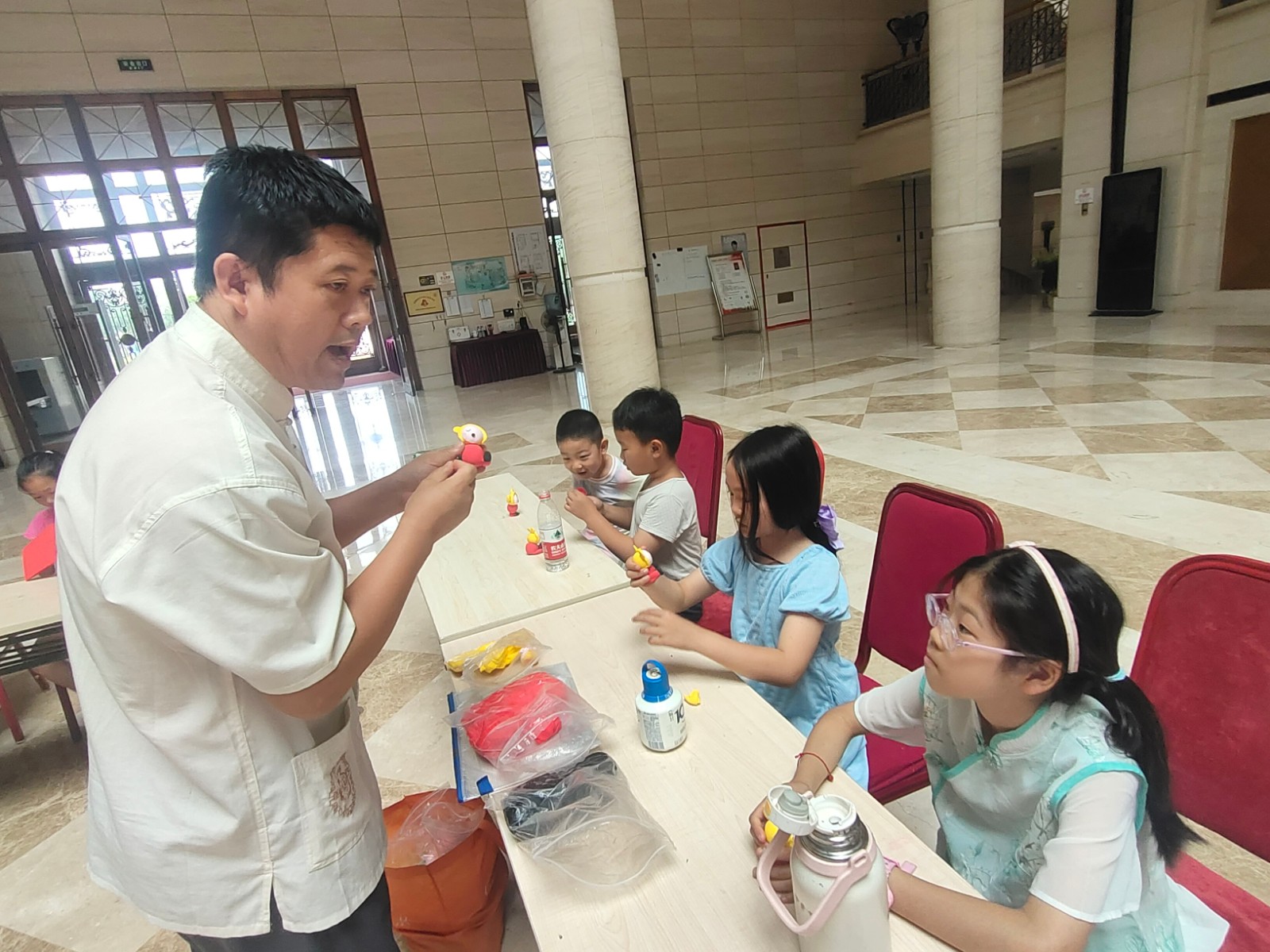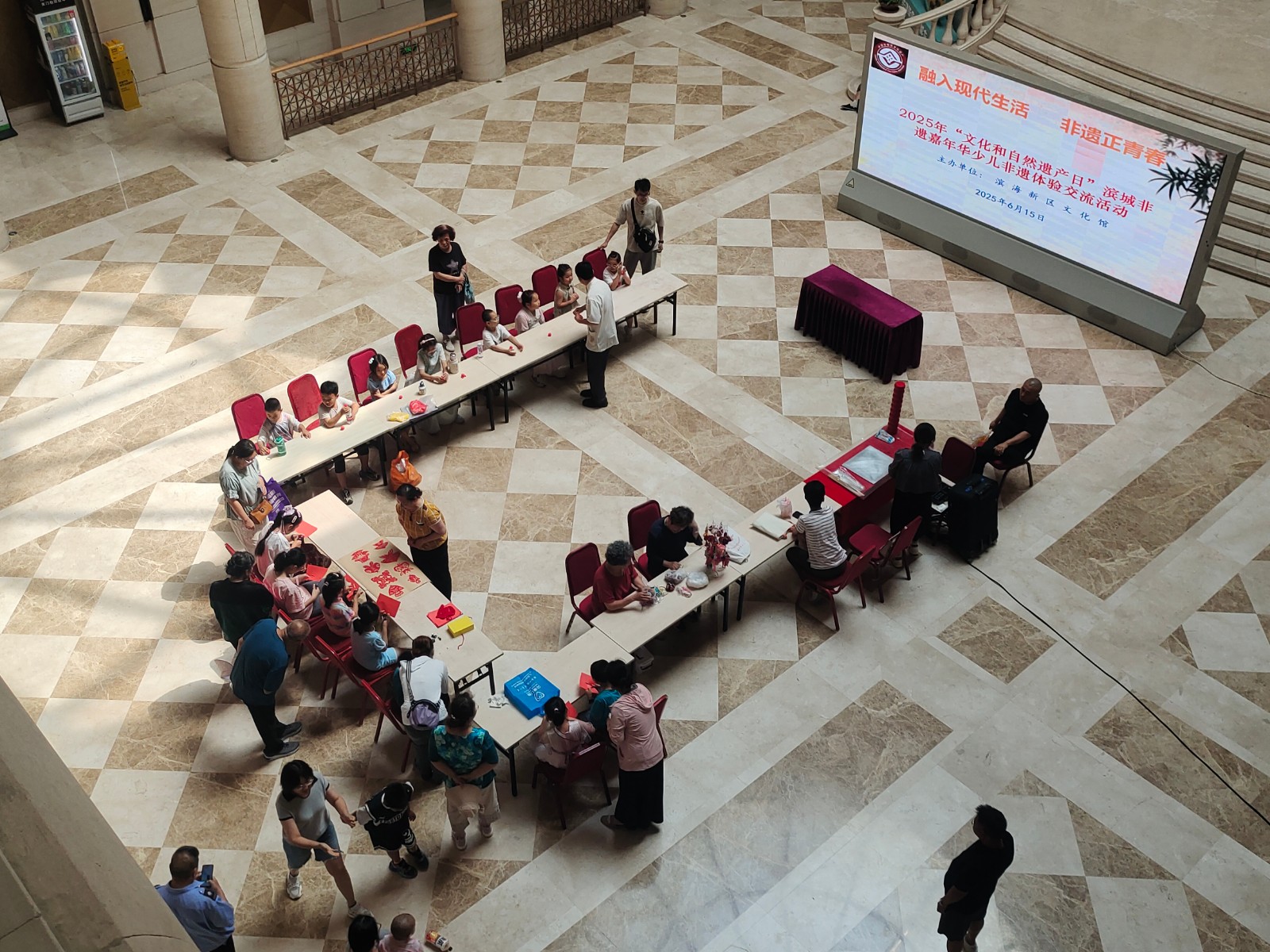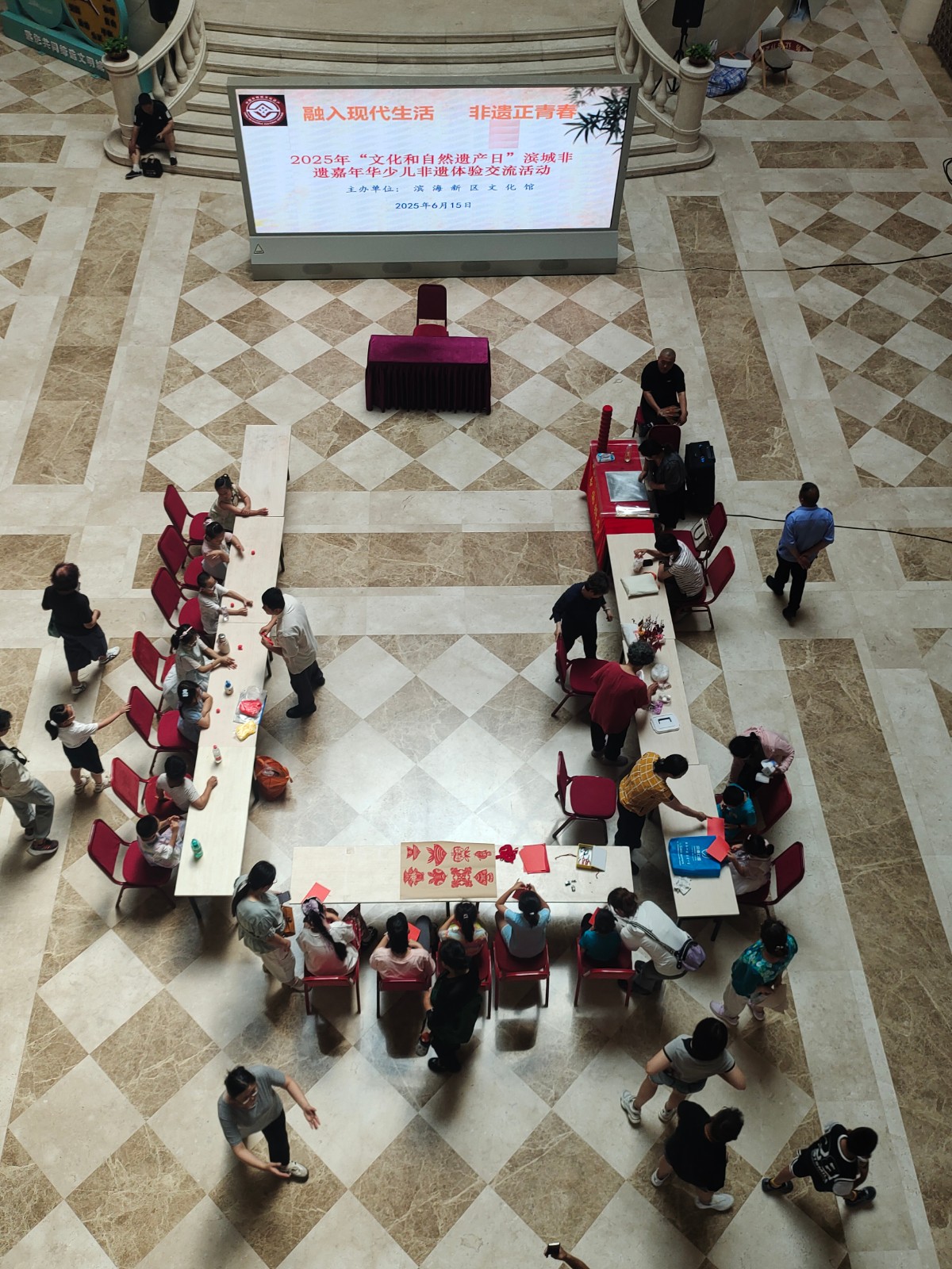 活动邀请市级非遗项目面人王工艺传承人王永艳、大港剪纸传承人单瑞金、区级非遗代表性项目大港女红民间艺术传承人曹俊姑、糖画王制作技艺传承人王拥军为青少年讲解非遗知识和项目特色,让孩子们体验简单的非遗项目制作。