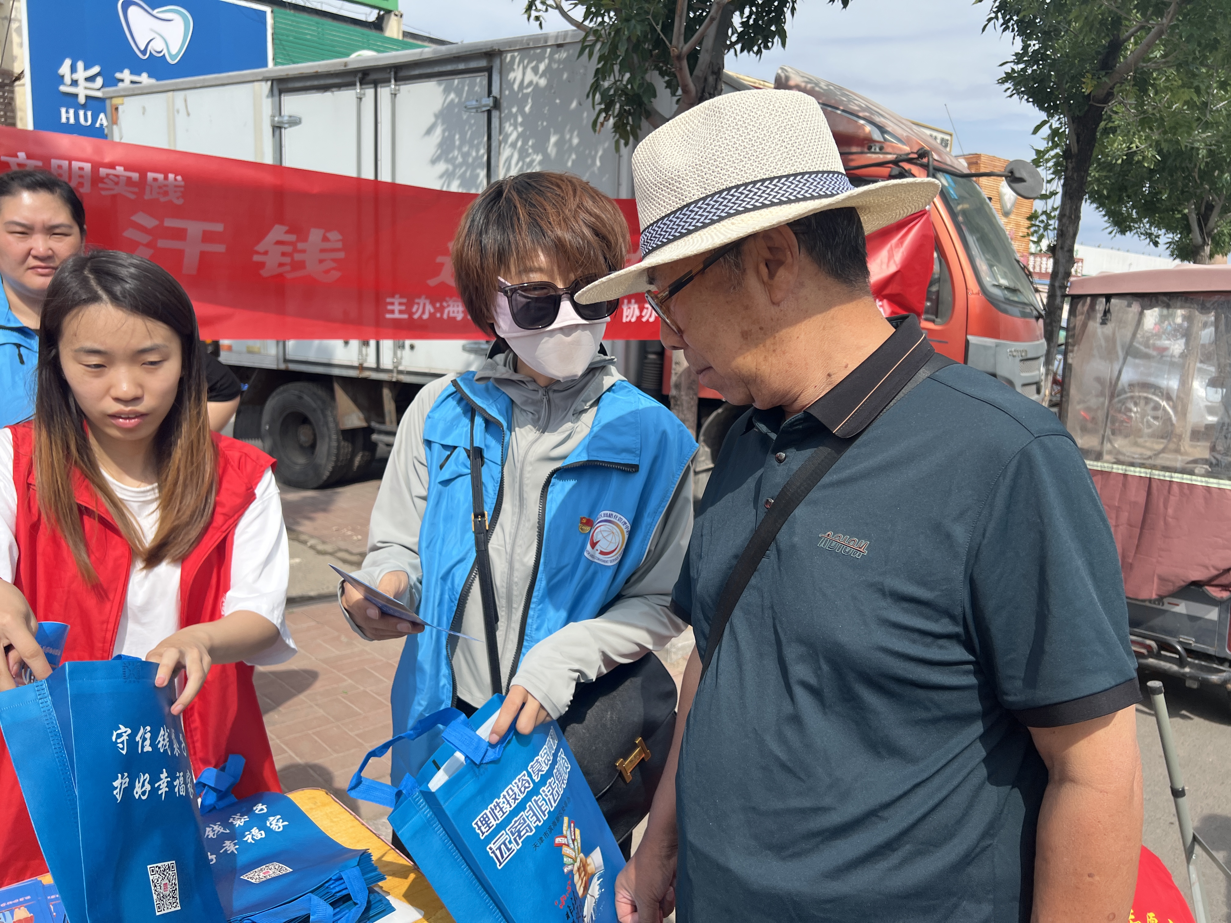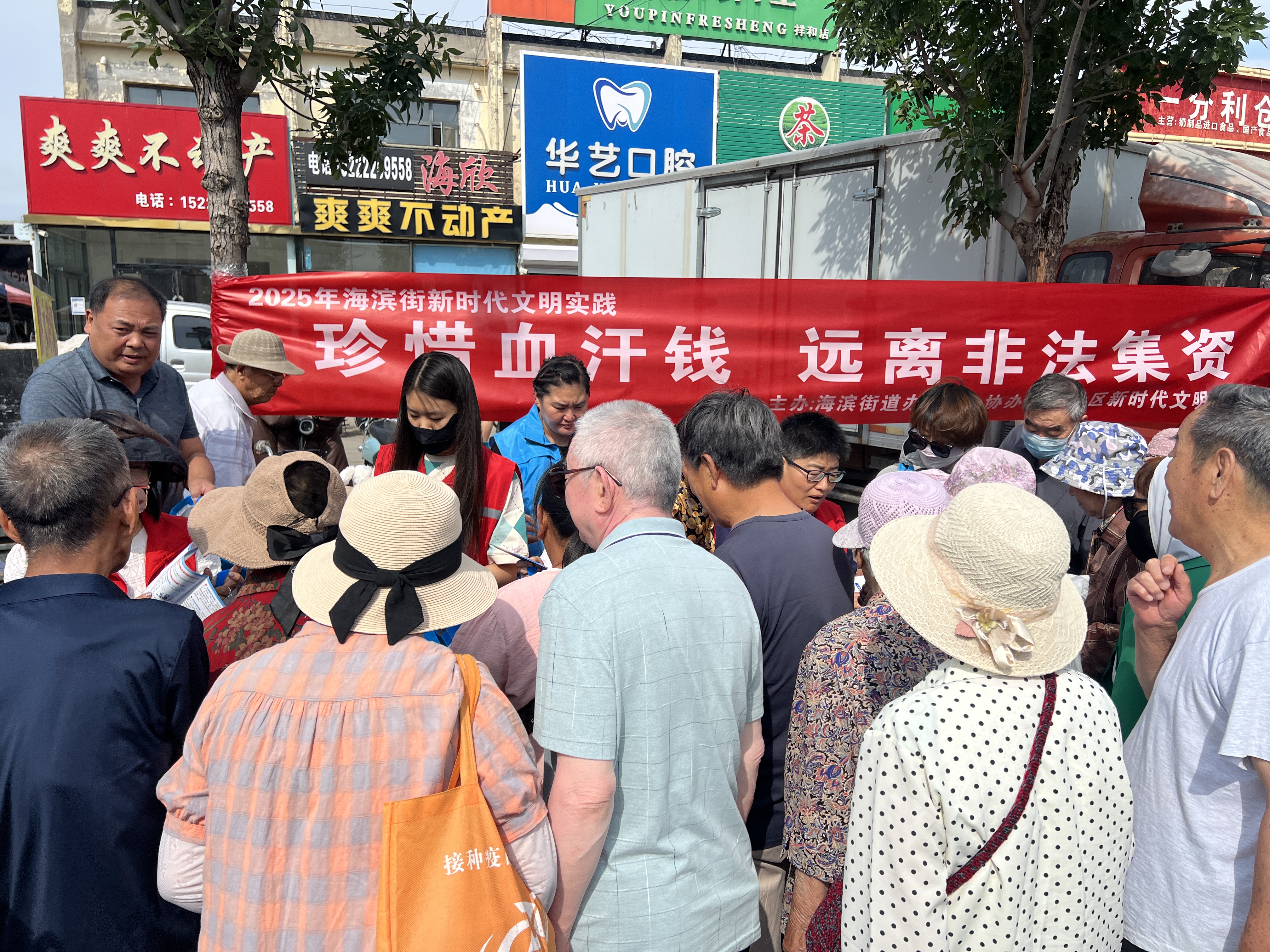 津滨网讯(记者 张爱萌 通讯员 岳金森 摄影报道)为进一步增强居民防范非法集资和电信网络诈骗的意识和能力,切实保障群众财产安全,6月16日,海滨街道怡然社区组织网格员、退役军人、党员志愿者,在辖区早市开展“珍惜血汗钱 远离非法集资”集中宣传活动,将非法集资小知识送到居民身边。