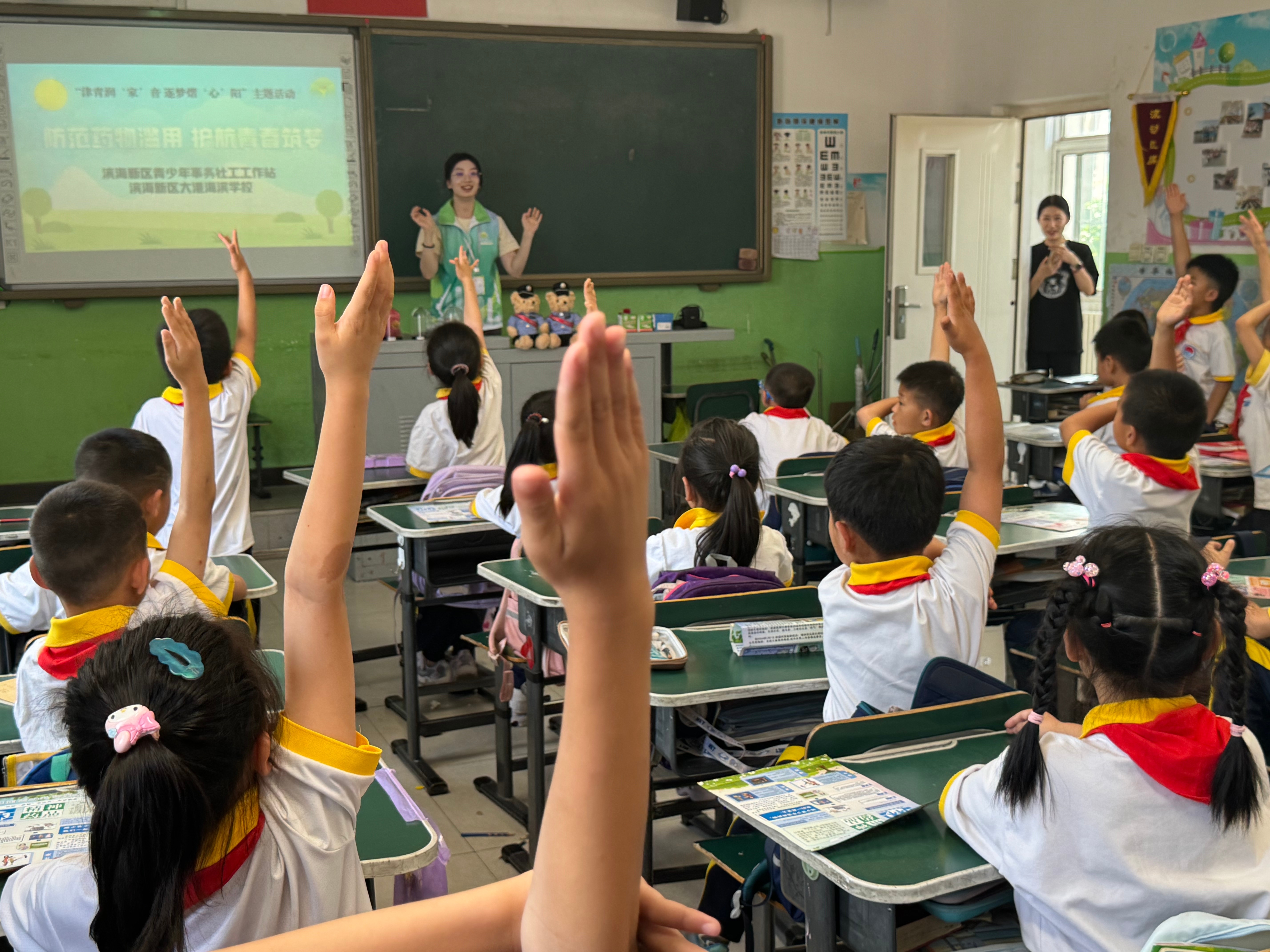 津滨网讯(记者 张爱萌 通讯员 张蕊 摄影报道)在第38个“6·26”国际禁毒日即将来临之际,为进一步增强青少年识毒防毒意识,守护校园一方净土,海滨街道幸福社区新时代文明实践站、“童young幸福”工作室联合天津市滨海强制隔离戒毒所、海滨街禁毒办、滨海新区青少年事务社工站,走进滨海新区大港海滨学校,面向一年级学生开展“青春无毒筑防线 校园净土共守护”禁毒知识讲座。以童趣满满的形式,为萌娃们上了一堂生动的“禁毒第一课”。