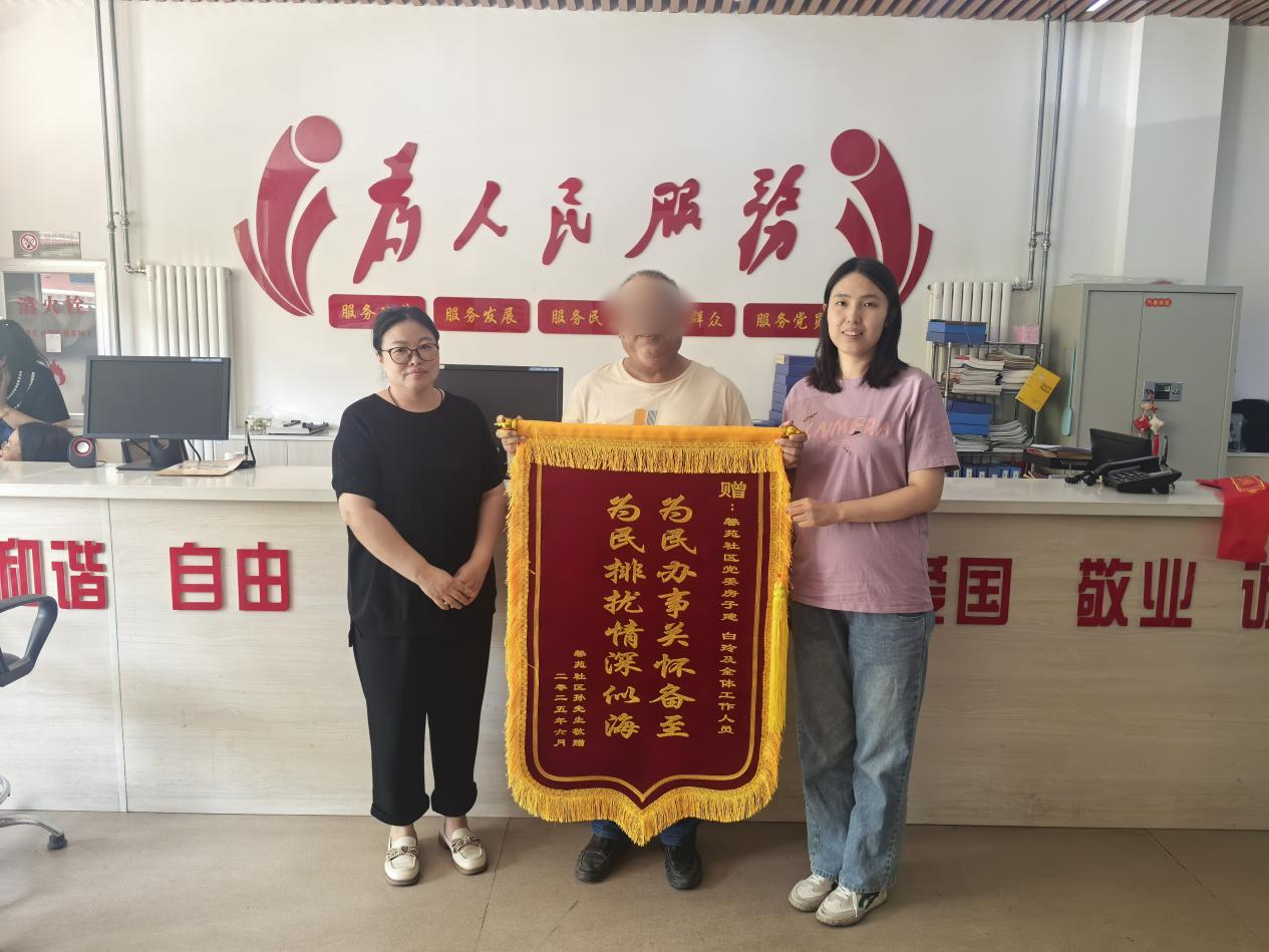 津滨网讯(记者 刘淼 摄影报道)“真的万分感谢你们!谢谢你们对我母亲无微不至的关怀,虽非亲人却胜似亲人。”近日,塘沽街道馨苑社区居民孙先生专程赶到社区,将一面写有“为民办事关怀备至,为民排忧情深似海”的锦旗送到社区工作人员手中,以此表达长久以来社区工作人员对他母亲的帮扶和关怀。