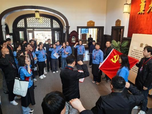 据介绍,为庆祝中国共产党成立104周年,进一步做细做实南港工业区的党建工作,厚植党员"知史爱党、知史爱国"的精神底色,天津经开区两新党委组织南港工业区30余名党员走进中共天津市委旧址张园,以一场身临其境的沉浸式实景党课《信仰的力量》,让百年党史在情景交融中“活”起来。