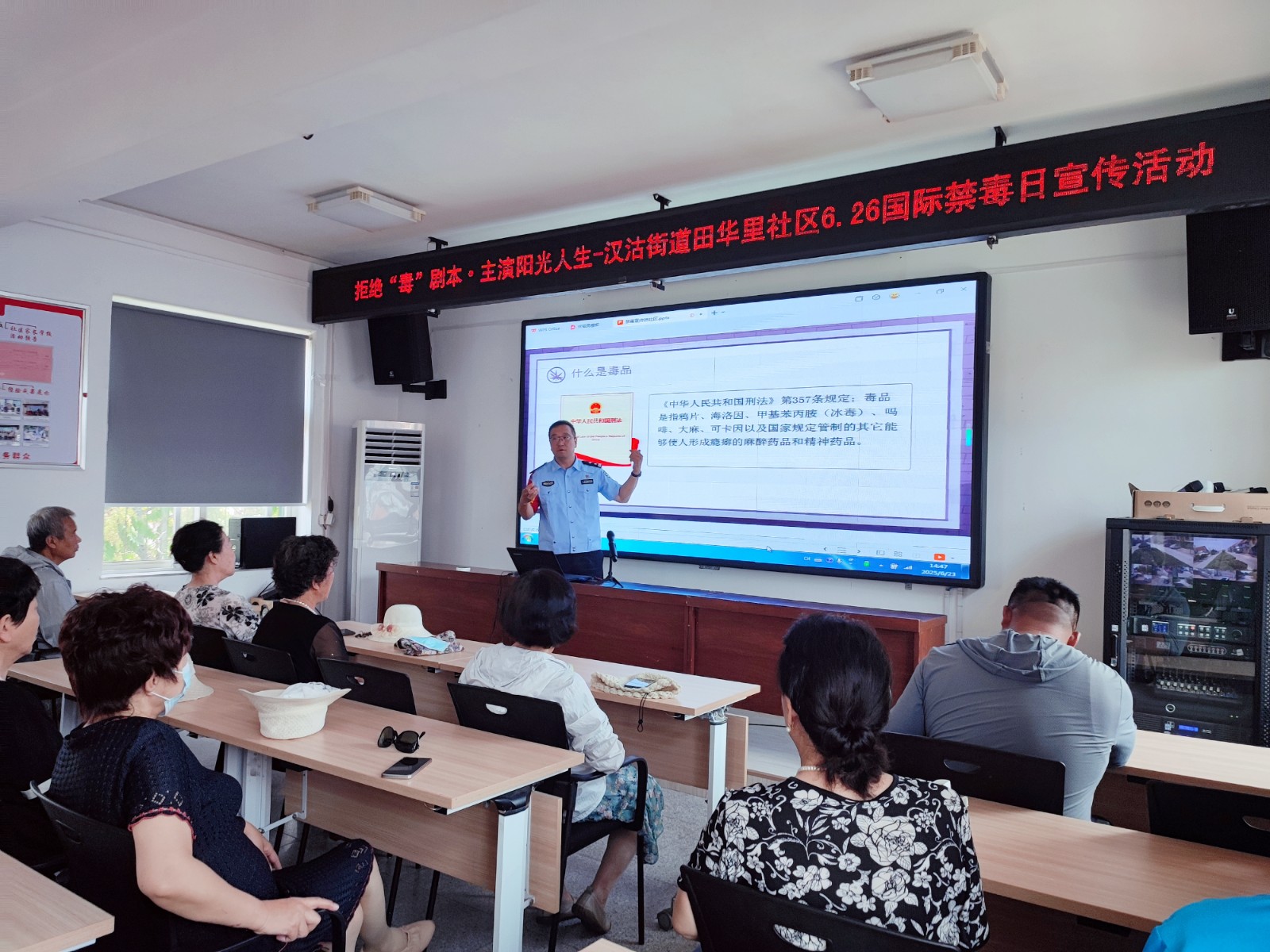 津滨网讯(记者 赵伟 李晨曦 通讯员 阎作梁 摄影报道)6月23日,汉沽街道田华里社区联合汉沽街道禁毒站、滨海强制隔离戒毒所共同开展“拒绝‘毒’剧本 主演阳光人生”禁毒宣传活动,为社区注入防毒拒毒的强大正能量。