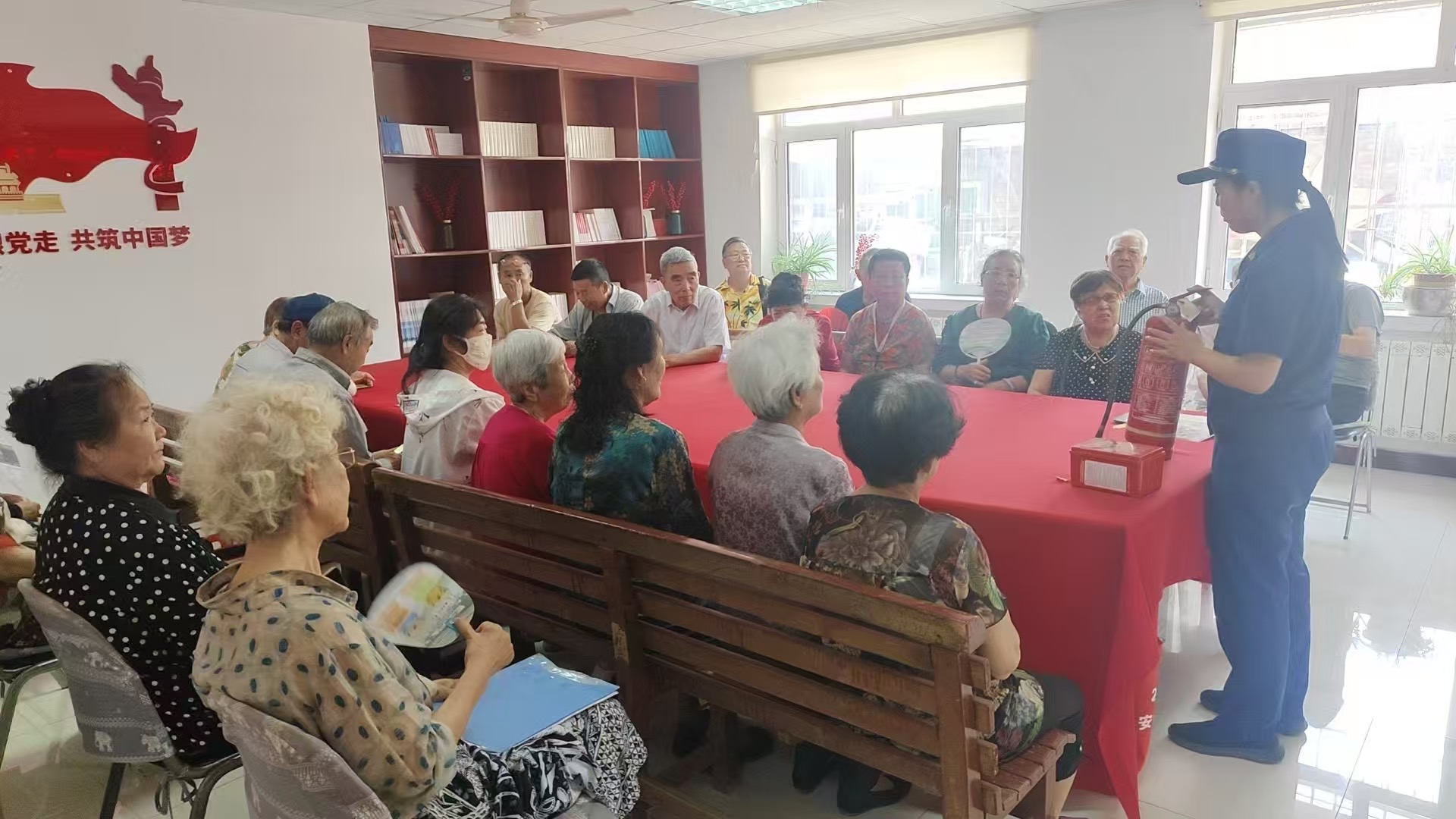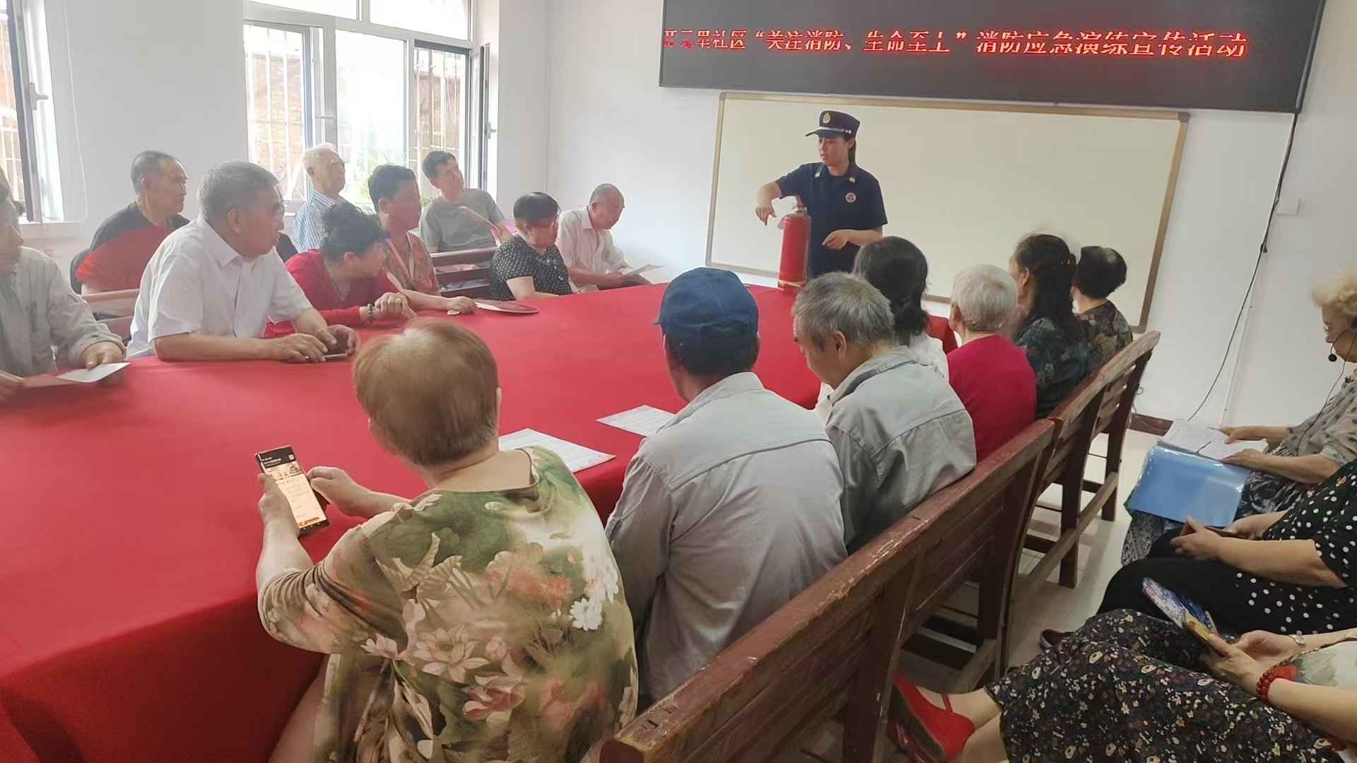 理论知识培训结束后,实战演练环节正式开始。模拟场景设定为老年日间照料中心突然发生火灾,现场浓烟弥漫。随着急促的警报声响起,社区工作人员迅速反应,立即启动应急预案。在讲师和社区工作人员的有序引导下,参与演练的退休老党员、居民代表、企业职工们用湿毛巾捂住口鼻,弯腰低姿,沿着预定的安全通道迅速、有序地撤离至指定的安全集结点。过程中,大家听从指挥,配合默契,没有出现慌乱和拥挤的情况。与此同时,星源企业职工组成的应急救援小组迅速取用附近的灭火器和消防栓,对“火源”进行扑救,展现出了良好的团队协作能力和应急处置能力。